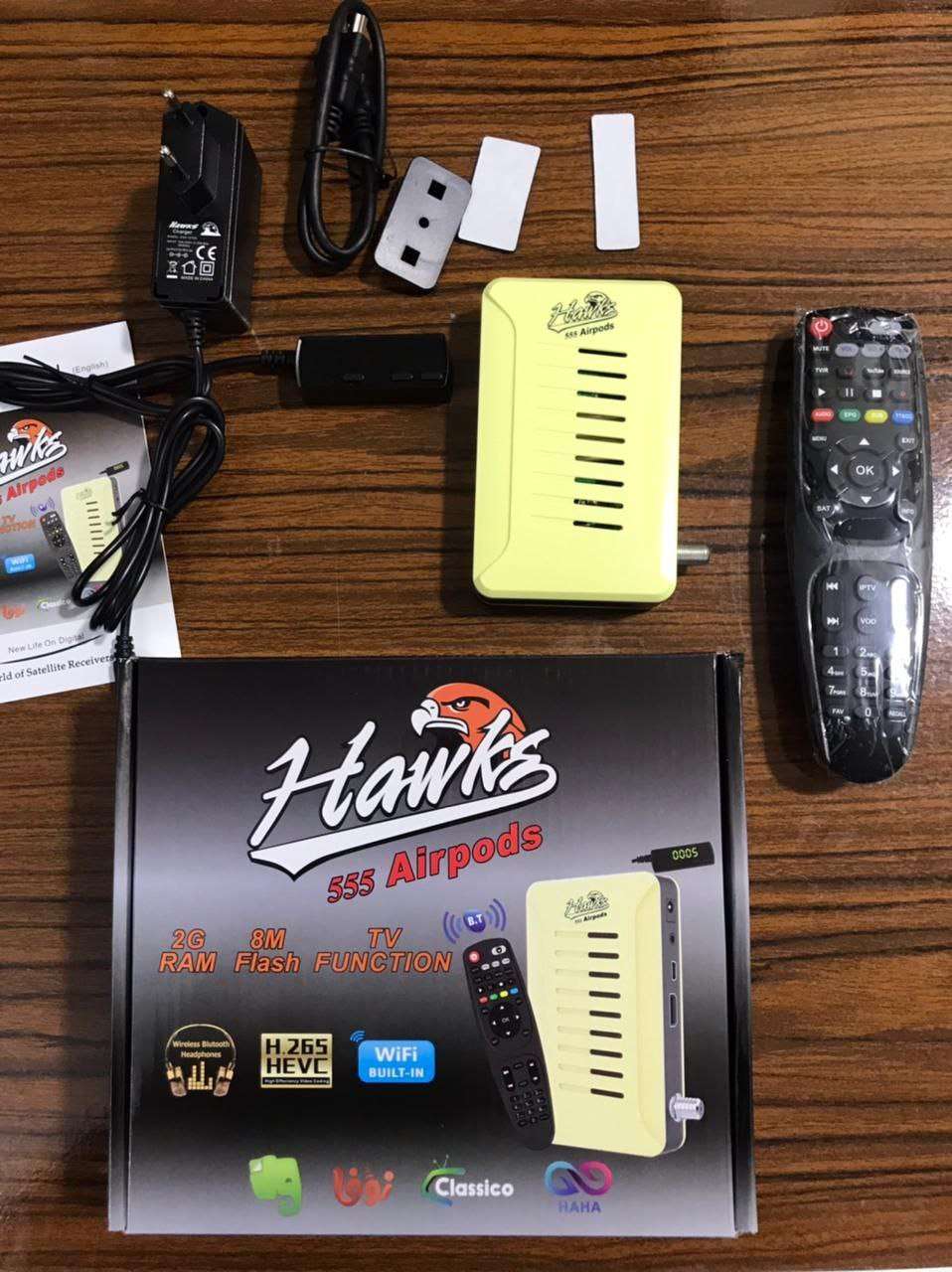 Hawks 555 AirPods => 2517DA معالج 2G رامات يدعم HEVC H.265 يدعم سماعات البلوتوث والصب والايربودز ريموت Bluetooth بخاصية نسخ الشفرة فلاشة WiFi داخلي شاشة رقمية بزراير بوردة تقفيل الخارج جهاز