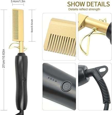 مشط تصفيف الشعر الحراري لو بتدوري على جهاز يوفرلك وقتك ومجهودك في تصفيف شعرك، يبقى المشط الكهربا ده هو الحل! بيجمع بين فرد الشعر وكمان عمل كيرلي ناعم، في جهاز واحد سهل الاستخدام وسريع السخونة. شكله ش