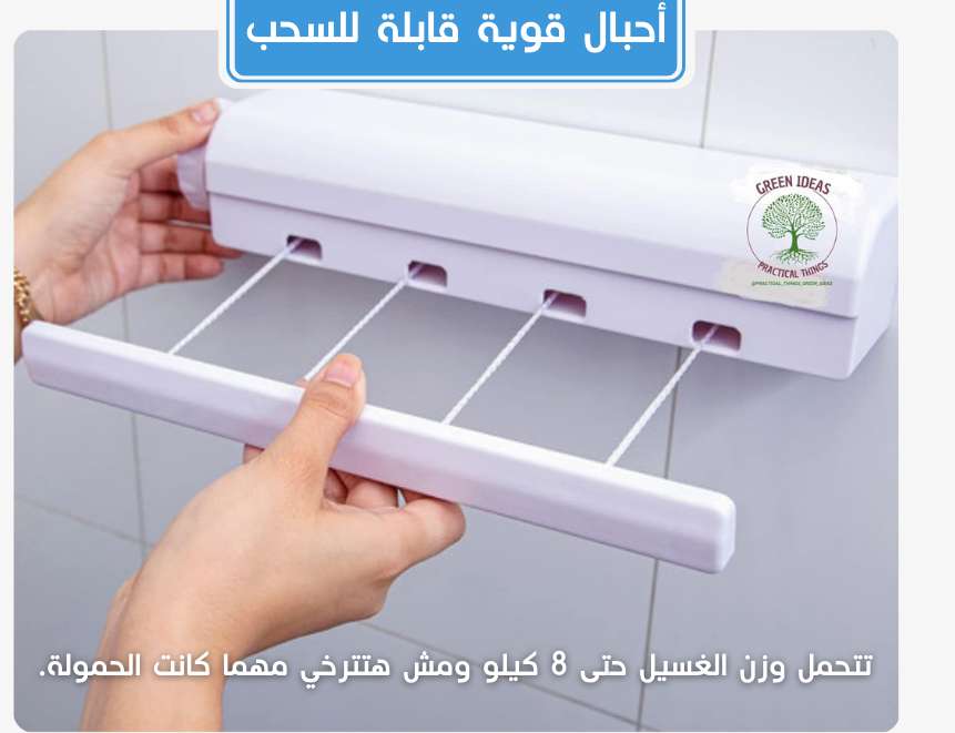 منشر الحائط المحمول القابل للسحب ده منشر غسيل تلسكوبي بيتثبت على الحيطة، عملي جدًا للمساحات الضيقة زي الحمام أو البلكونة. تقدر تفرده وقت ما تحتاج تنشر وتلمه تاني لما تخلص، فمش بيشغل مساحة خالص. شكله ش