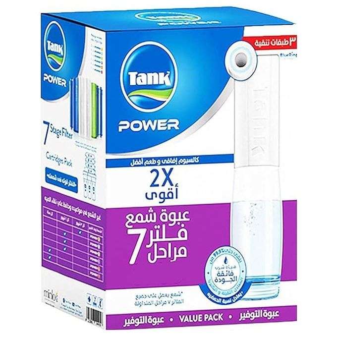 شمع Tank Power الجديد 2X أقوي من أي شمع فلتر ، ينقي المياه من 99.9% من الشوائب و الأتربة، الحشرات، الصدأ، الكلور، الغازات، المواد العضوية، الطعم و الرائحة ويعادل نسبة الحمضية في المياه و يزيد القلوية