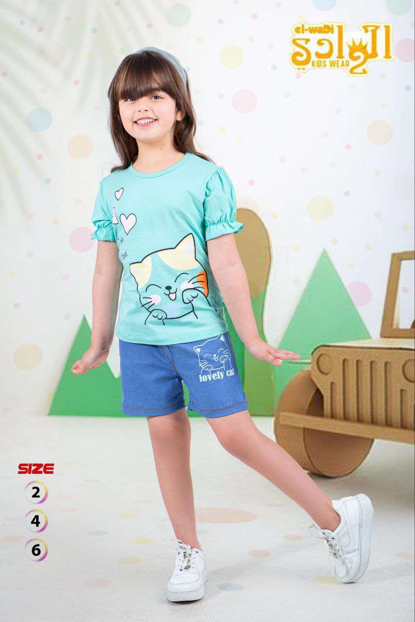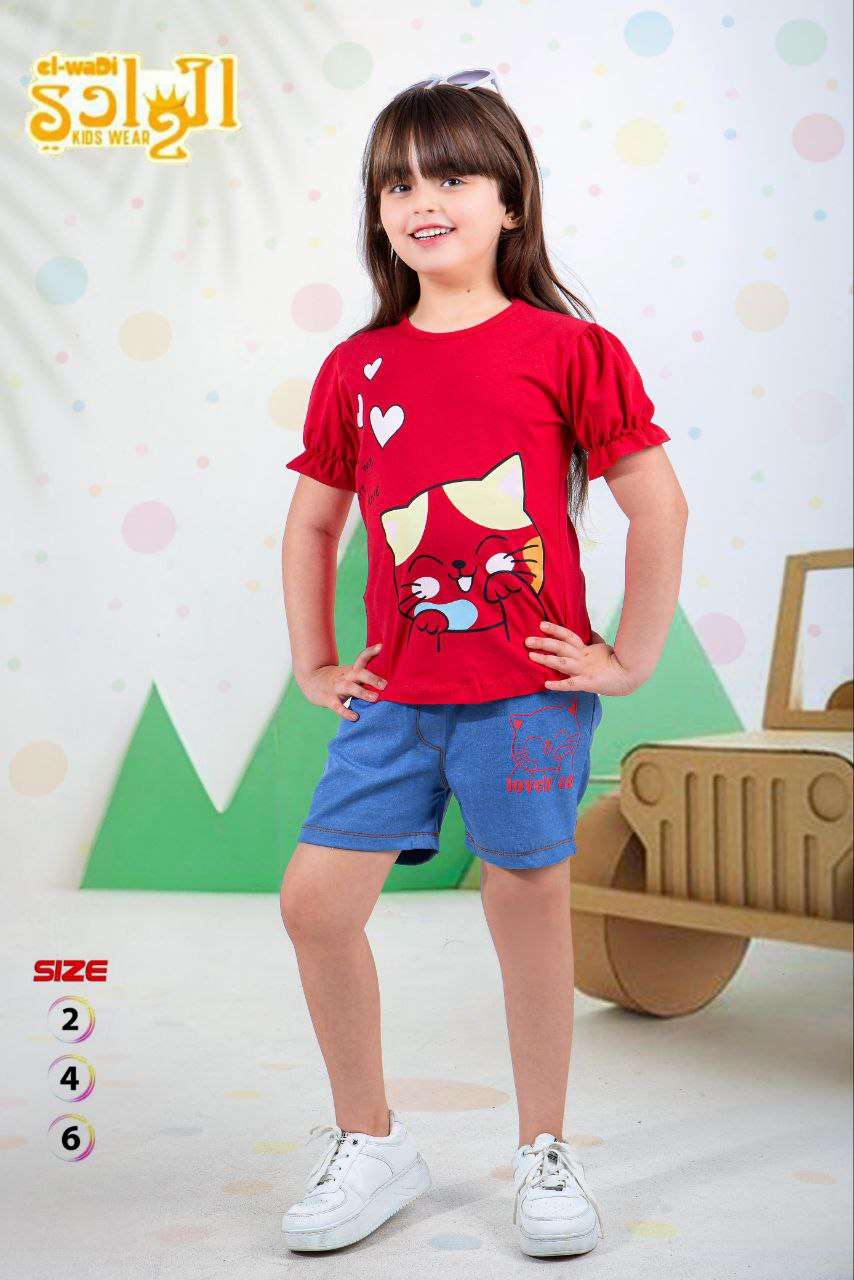التيشيرت قطن وشورت جينز طقم الخروجات السريع الراحه للحضانه