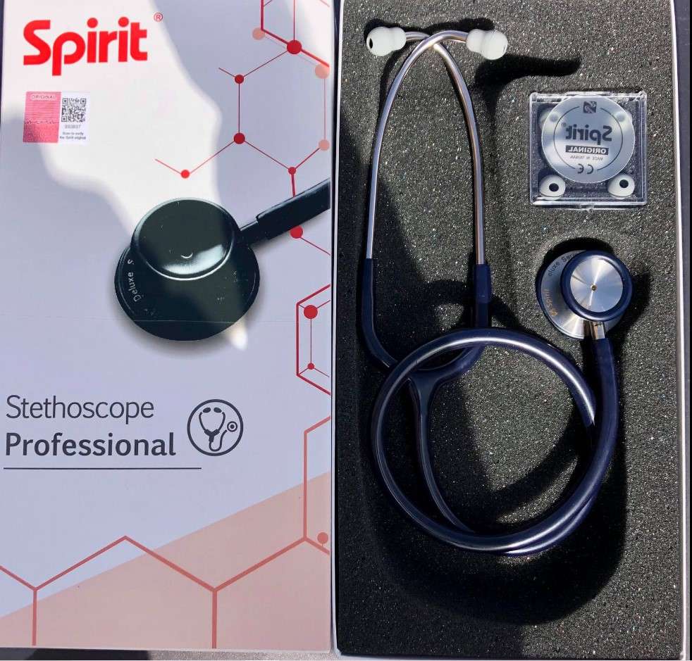سماعة طبيب تايواني سبريت (أزرق) ✅تتميز بقطعة صدر متينة وأذنين وأنابيب من بلاستيك PVC مصممة بشكل أنيق. ✅الحلقات غير الباردة والغشاء مصنوعة من البوليمر العازل المضاد للحساسية الذي يوفر راحة استثنائ