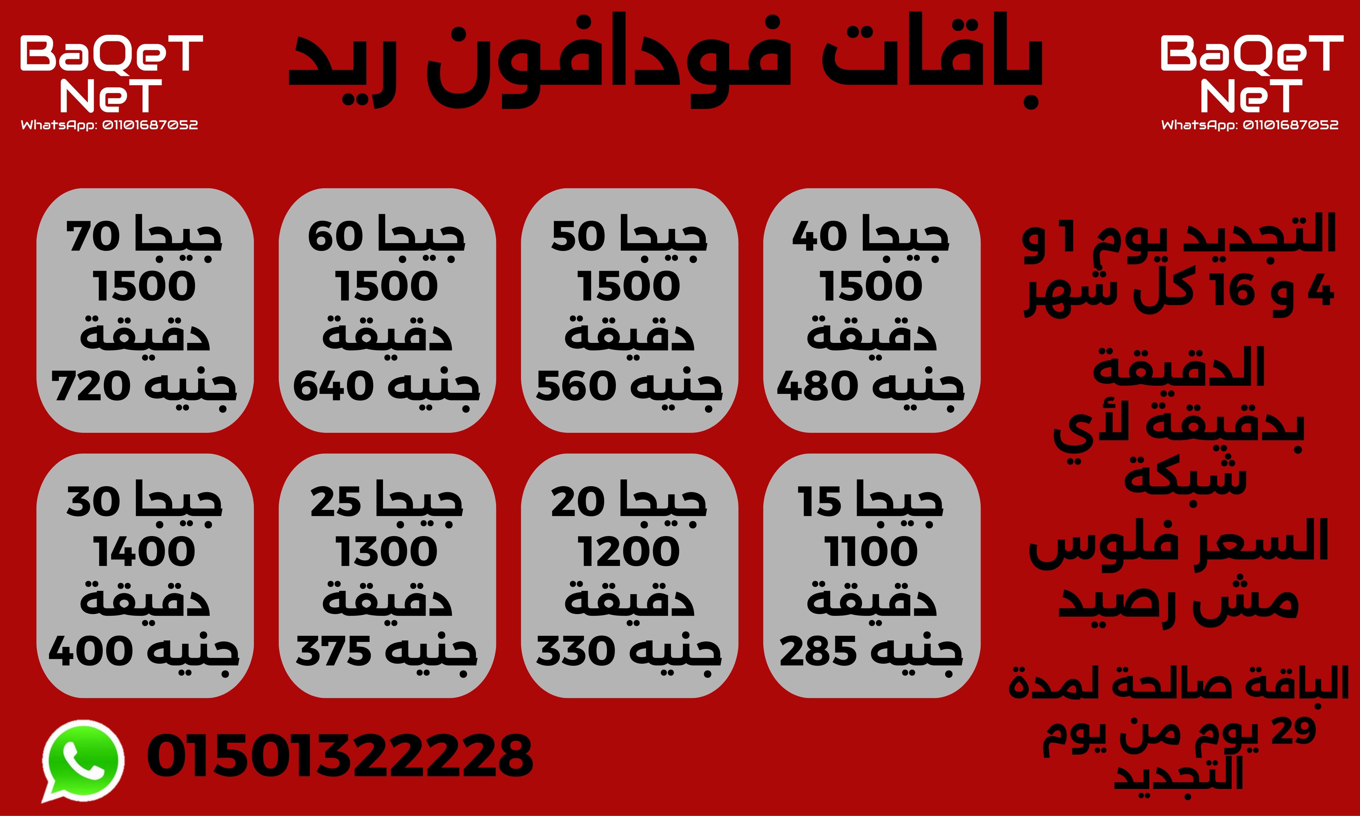 الرئيسيةباقات فودافون بأرخص الأسعار