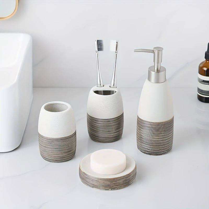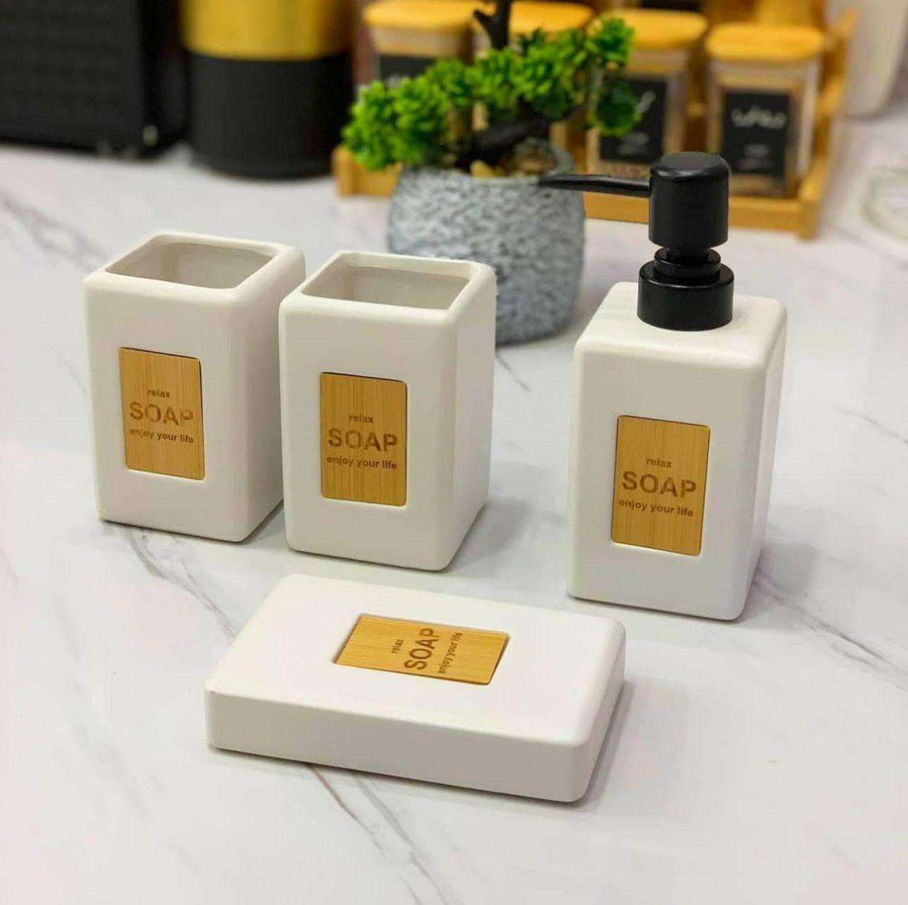 🛁🛒 طقم حمام بورسلين 4×1 🔥 لو بتدوري على لمسة شيك للحمام بتاعك.. الطقم ده هيخطفك 🙈💖 ❤️ تصميم ناعم وأنيق يناسب كل الأذواق ❤️ مكون من 4 قطع أساسيين لأي حمام ▪️ دسبنسر صابون سائل ▪️ حامل فرش