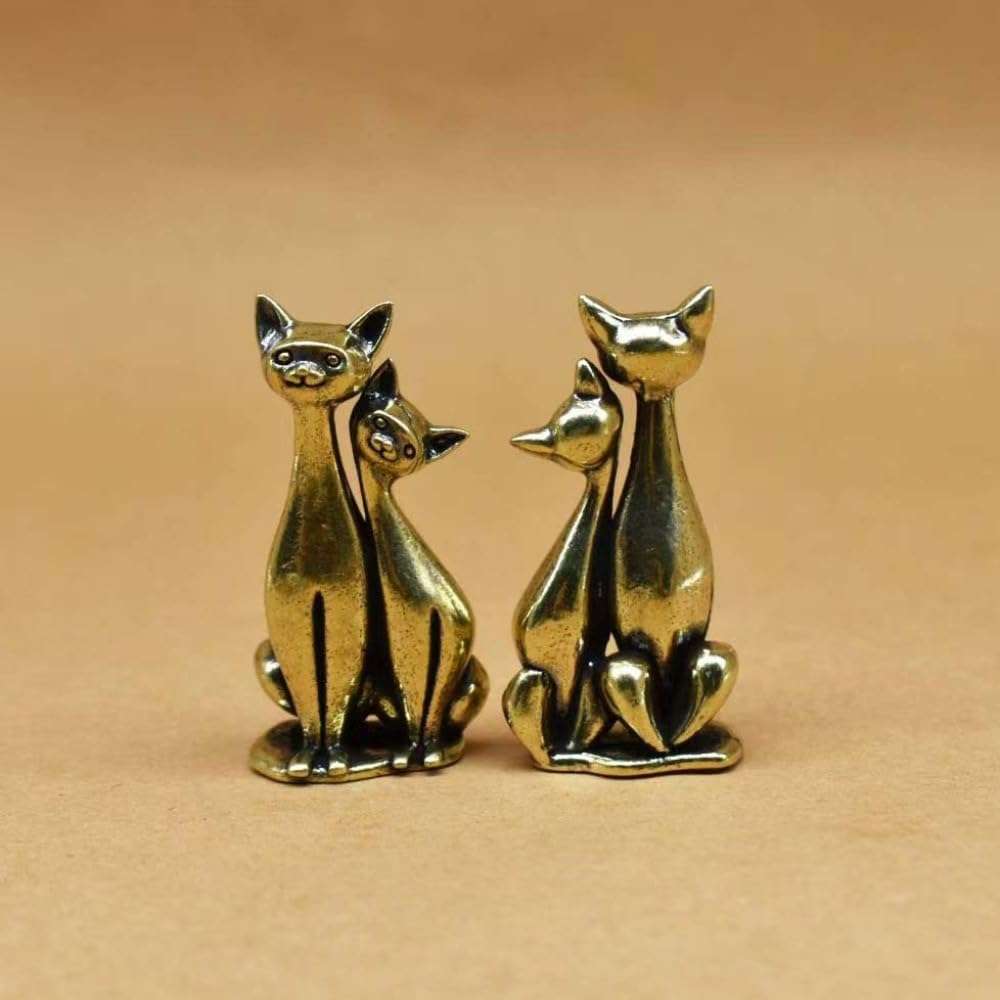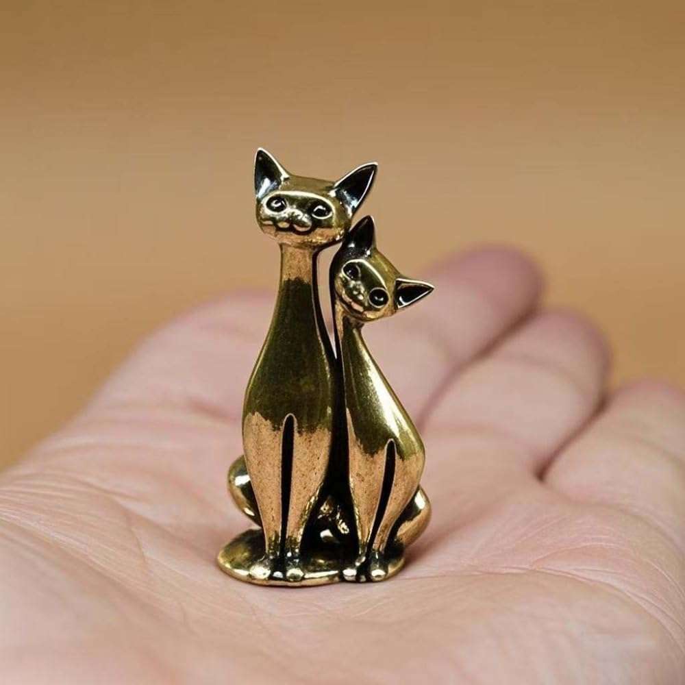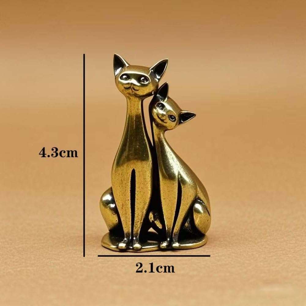 قطعة فنية منحوتة من النحاس على شكل زوجين من القطط-B0FT1Q2RWF