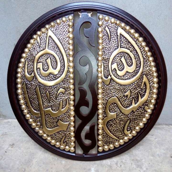 برواز معدن دهبى أو فضى طرق يدوى هاند ميد مثبت على خشب 50سم*70سم mdf