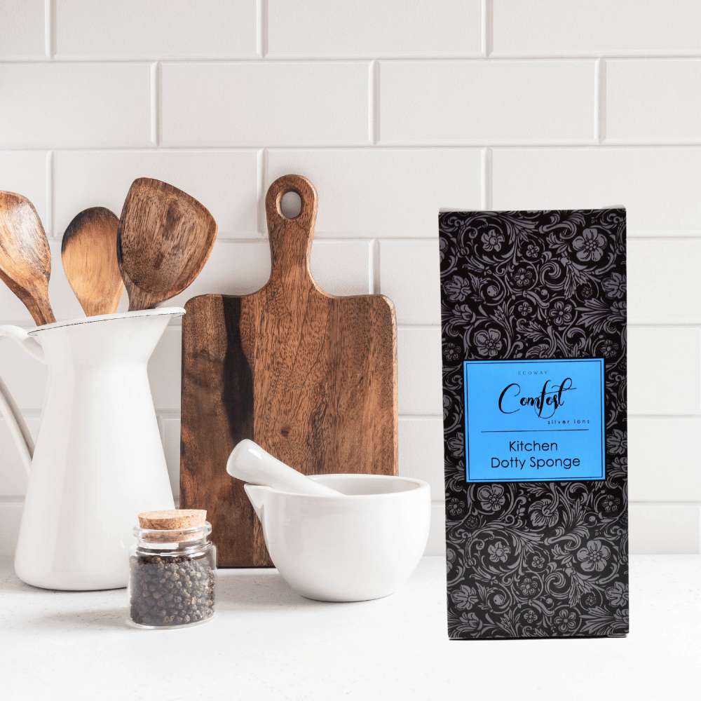 "تعرفي على Kitchen Dotty Sponge – الإسفنجة الذكية لتنظيف المطبخ اليومي. بفضل تصميمها ثنائي الجانبين وتقنيتها الإلكتروستاتيكية، تلتقط الغبار والفتات كالمغناطيس لتمنحك سطحًا لامعًا خالٍ من الأوساخ دون