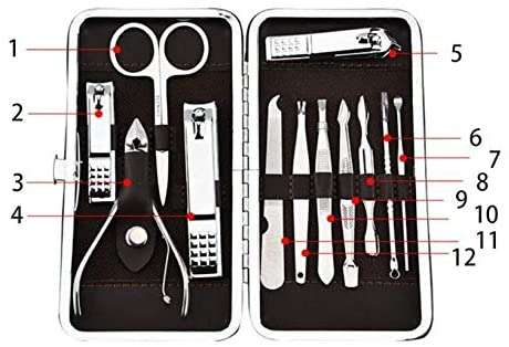 طقم باديكير القمر دة متكون من 12 قطعة مجموعة متعددة من الوظائف 12 قطعة من قصافات الاظافر يمكن استخدامها في تقليم الاظافر والقدمين وتشكيل الحواجب ومقاومة حب الشباب والتقشير وما إلى ذلك مجموعة