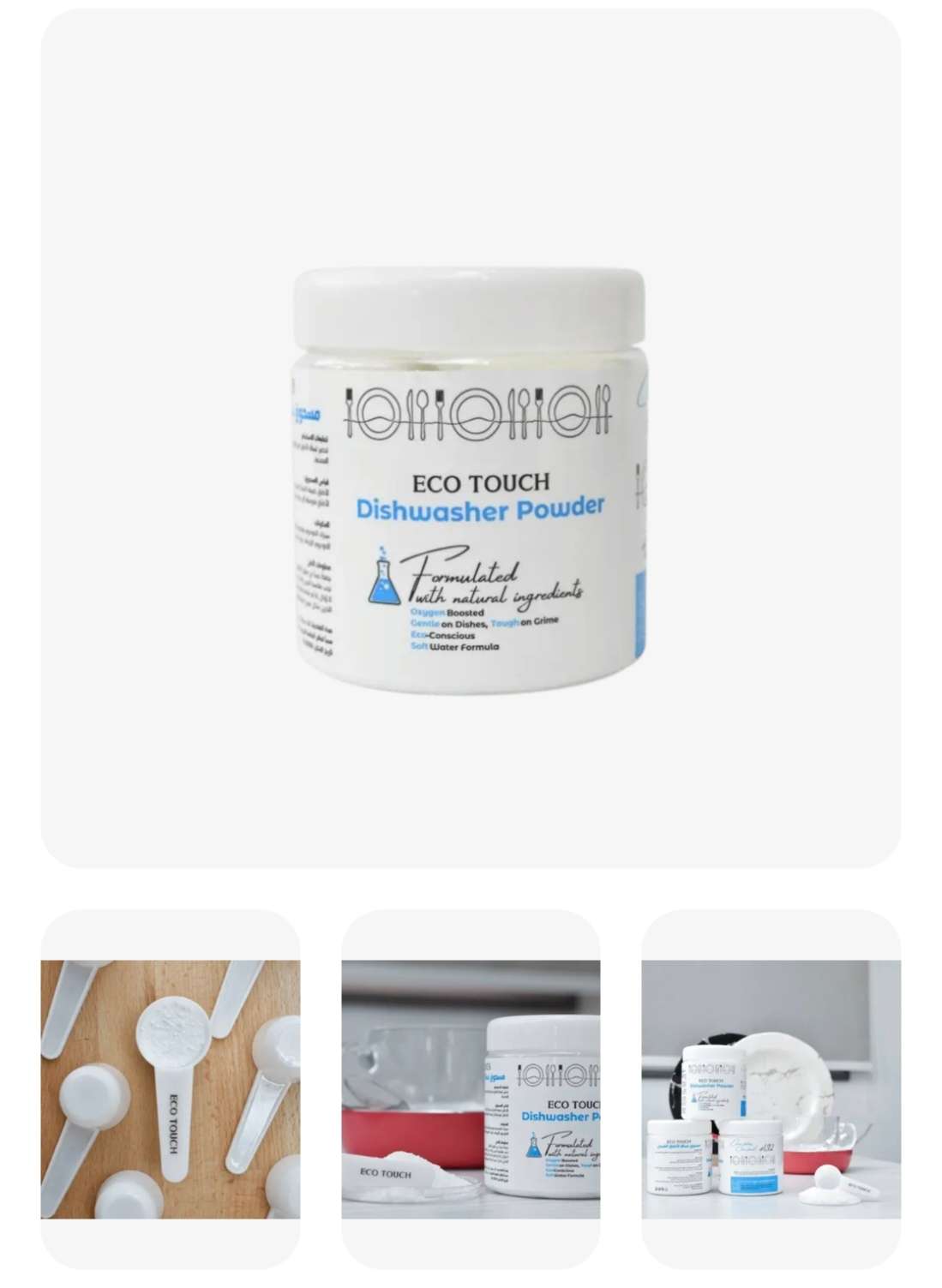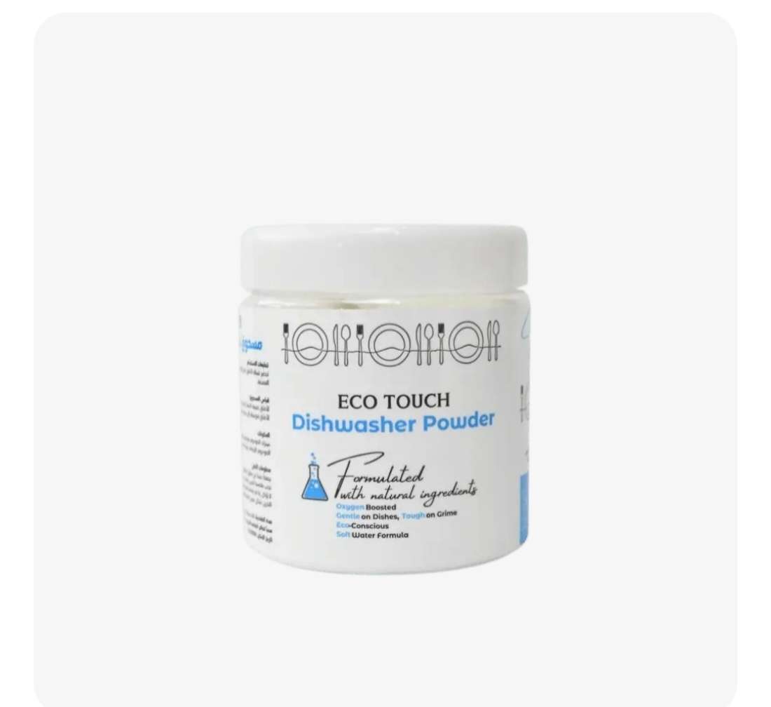تعرفوا على مسحوق غسيل الصحون EcoTouch، الحل الثوري الصديق للبيئة للحصول على أطباق نظيفة ومتألقة. مصنوع م مکونات طبيعية، يتعامل هذا المسحوق بفعالية مع الدهون والأوساخ والبقع، مع بقاه لطيًا على الأوان