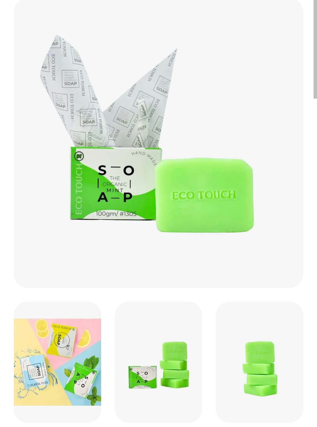 2.2 تعرفوا على ECO TOUCH، مجموعة من الصابون الطبيعي المصممة لمن يقدرون النظافة والصداقة مع البيئة والعناية البشرة. تم تطویرها وإنتاجها حصريا من قبل شرکتنا، وتقدم ECO TOUCH LEMONg ECO TOUCH MINT