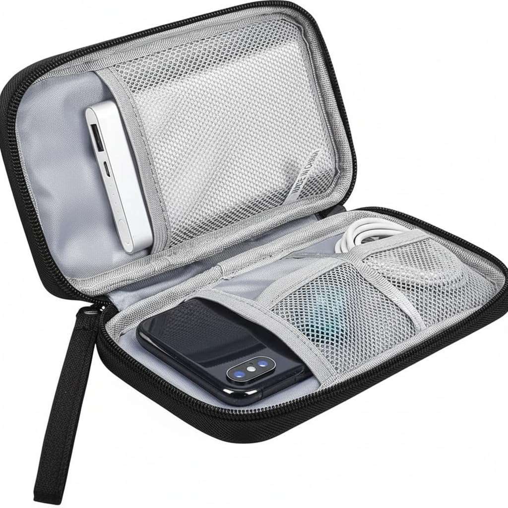 حقيبة سفر منظم إلكترونيات (19 x 11 سم، أسود) – حقيبة تخزين محمولة للكابلات والشاحن وبنك الطاقة والملحقات ✨ الوصف: اللون: أسود الحجم: 19 x 11 سم متين وواقي: مصنوع من قماش مقاوم للماء مع حشوة للحفاظ على