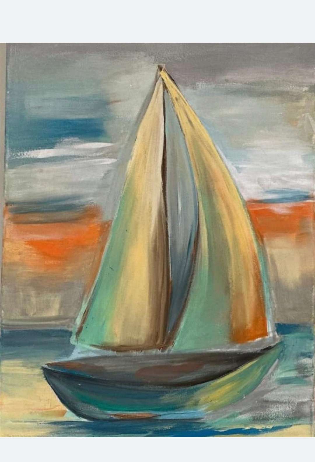 "رحلة الرياح الهادئة" تتموج أشرعة السفينة بألوان هادئة ومزاجية، كأنها تحمل في طياتها أسرار البحر المخبأة تحت سطحه اللامتناهي. تلتقط الألوان الهادئة لحظاتٍ من السكون والطمأنينة، حيث يلتقي الفضاء الرحب