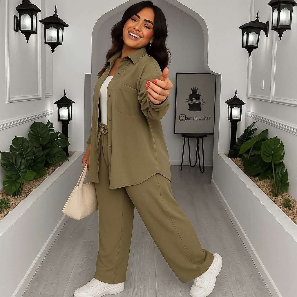 سوت حريمي ✨ إطلالة مريحة وأناقة بسيطة في كل خطوة طقم نسائي من قطعتين بلون زيتوني أنيق، تصميم واسع ومريح يناسب كل الأذواق والمقاسات. ✔️ خامة ناعمة ومريحة للارتداء اليومي ✔️ تصميم كاجوال ش