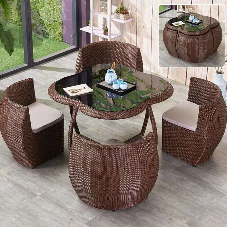 سفرة الجاذبيه العظمى😍 شيك جدا وانيقه في نفسها😂😍 متينه شاسيه حديد يتحمل لوزن350ك عصريه للأوت دور واللينفج والبلكونه والروف وكمان للمطبخ بقا هتكون عمليه جدا اربع كراسي ترابيزه الخامه