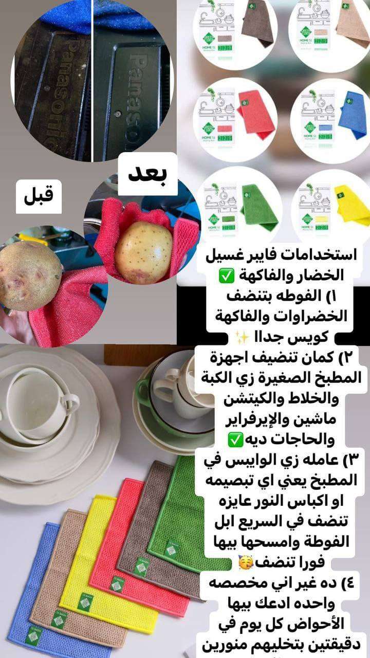 فوطة الاطباق والمعالق والكوبايات والمجات ومنتجات تابروير وازايز المياه وتنظيف الفواكه والخضار وخضار السلاطة وتنظيف الرخامات والتلاجات والمايكرويف والبوتاجاز والدهون والخلاط والكبة والمطحنة وعلب التواب