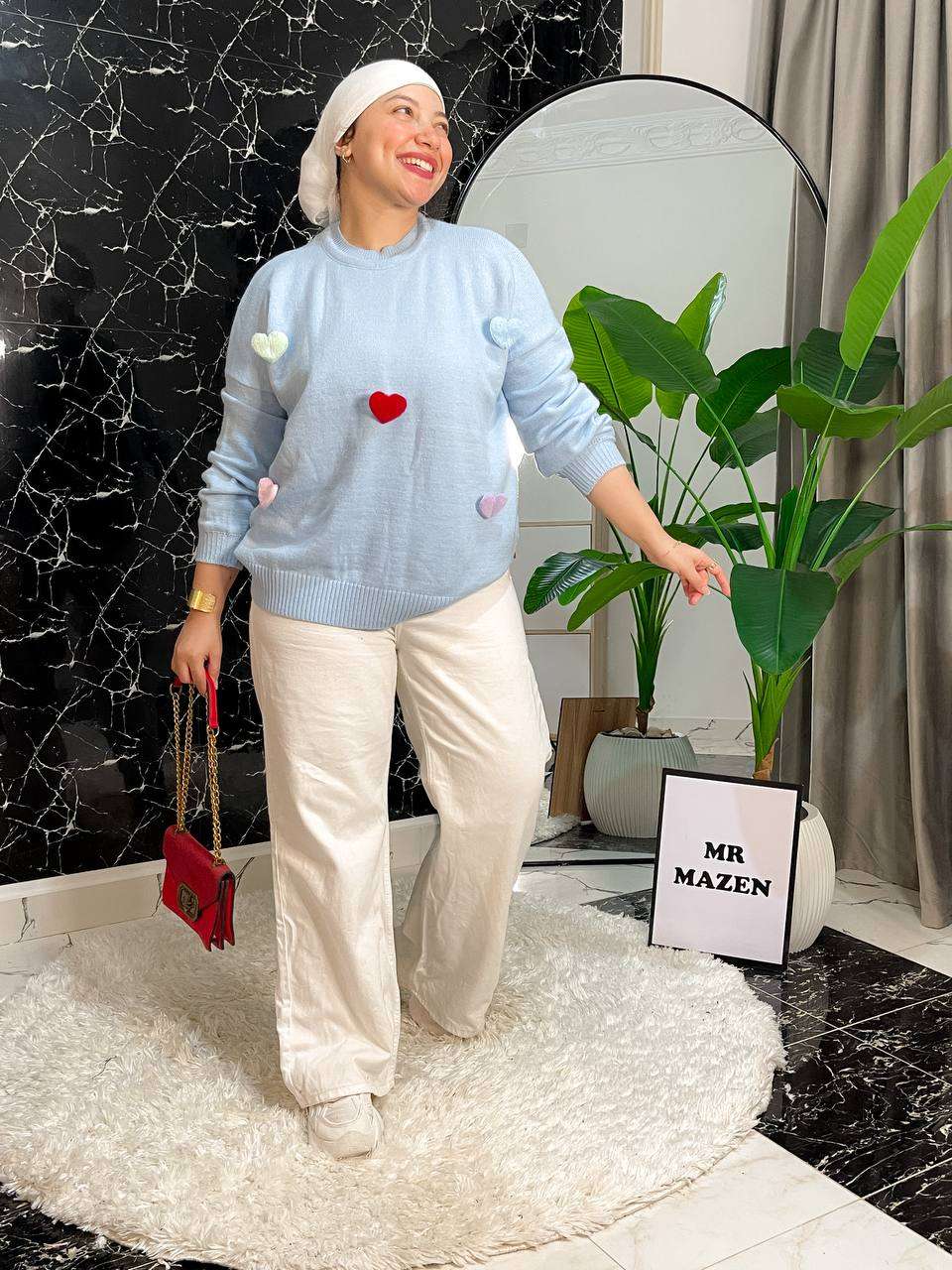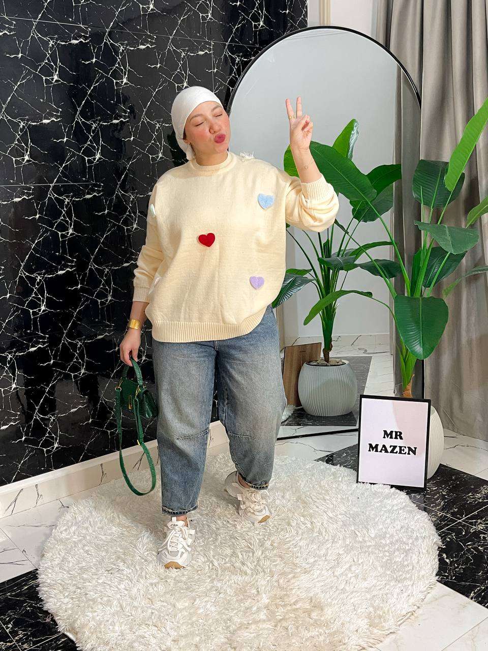 ‏Oppa دي بتفاصيلها ف قلبي 🖤 مفيش اسهل من كده ف الشتا لاي خروجه سريعه وعمليه و ي سلام لو فوقه چاكت بامب أو ڤست كت بقى شوفي الشياكه بس 🤣🙊🙊🙊 الموديل 💭 بلوزه قلوب فروله في الكوم اللي معاك كده