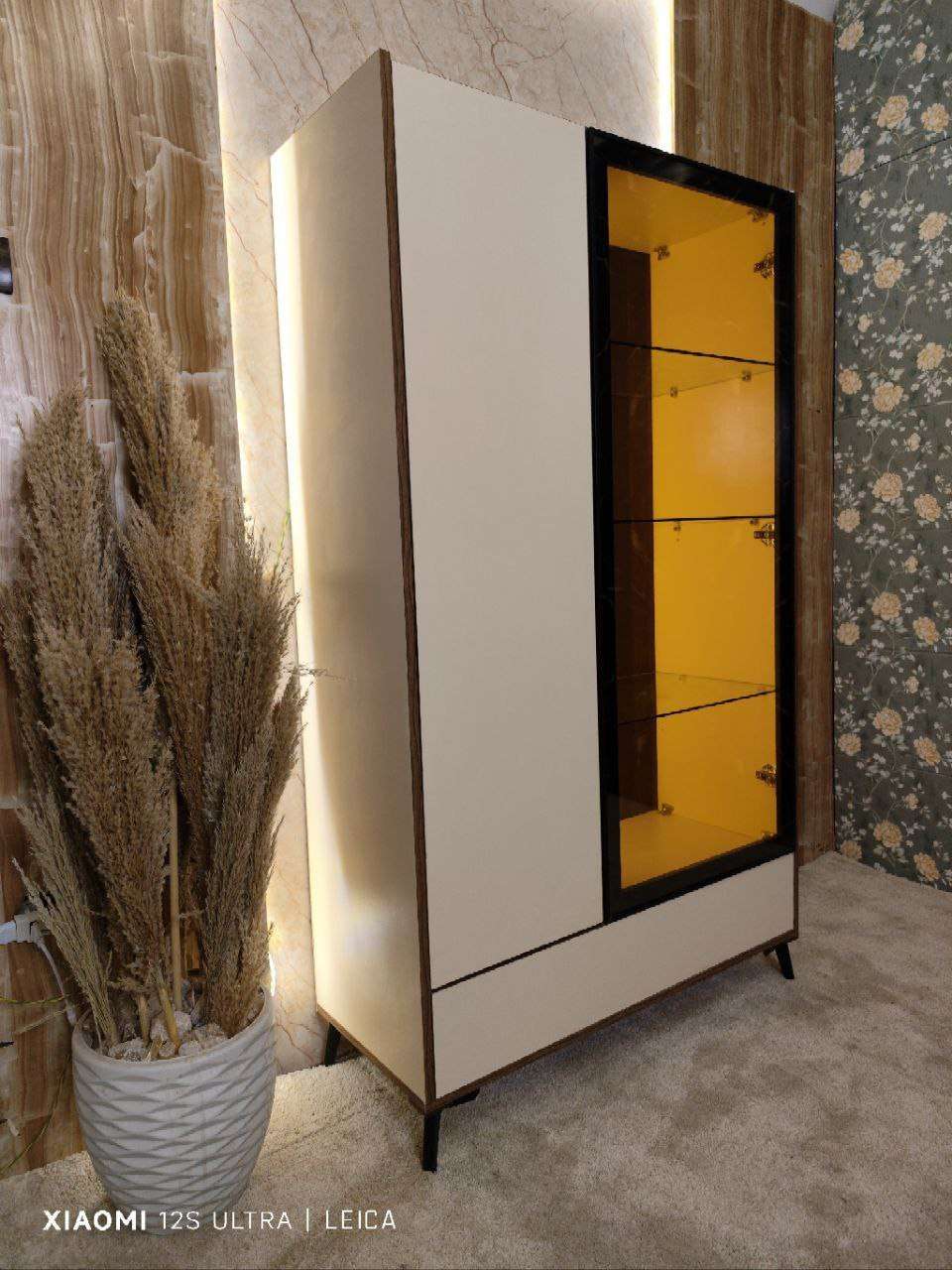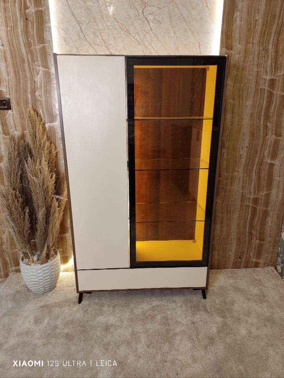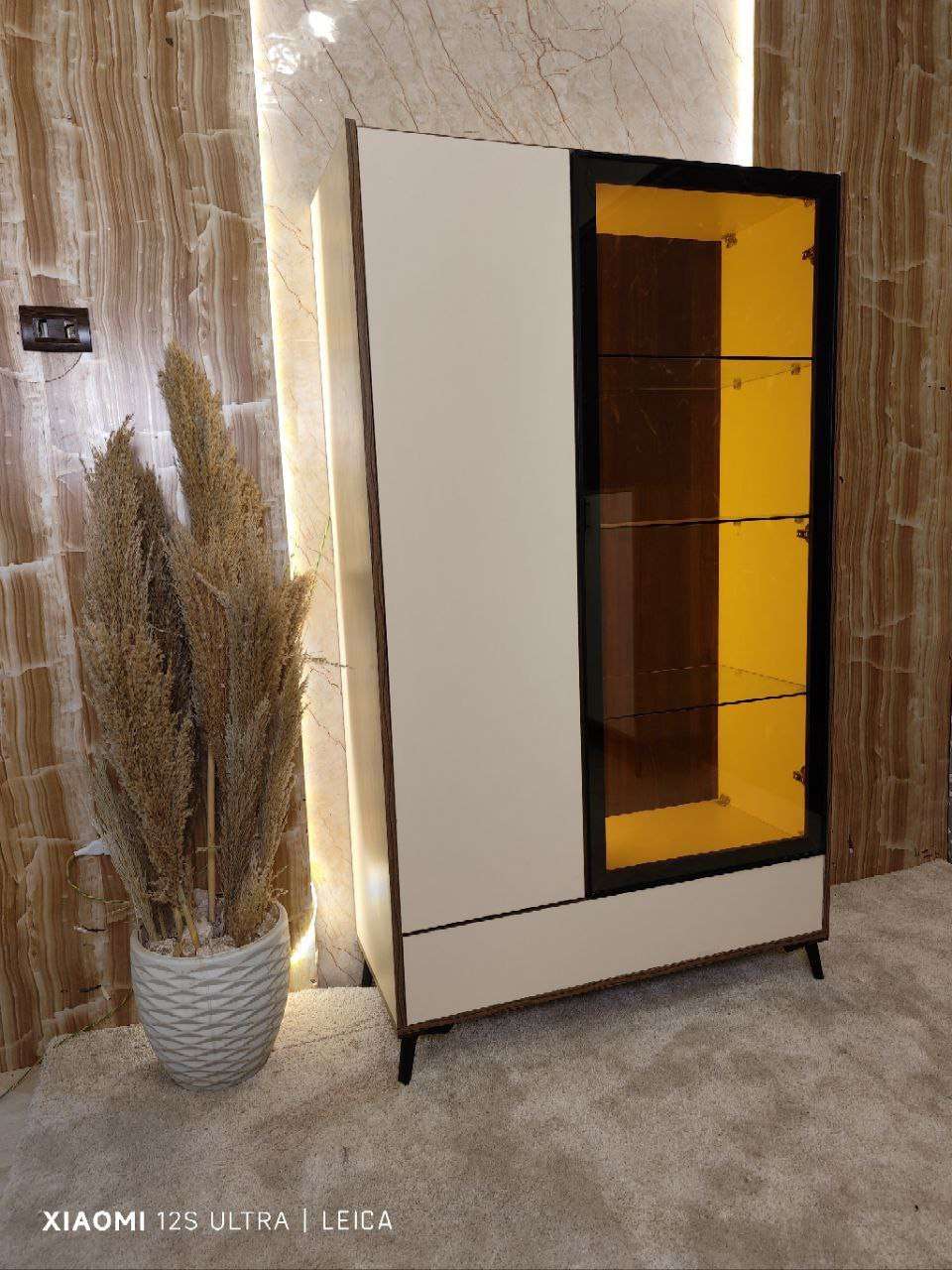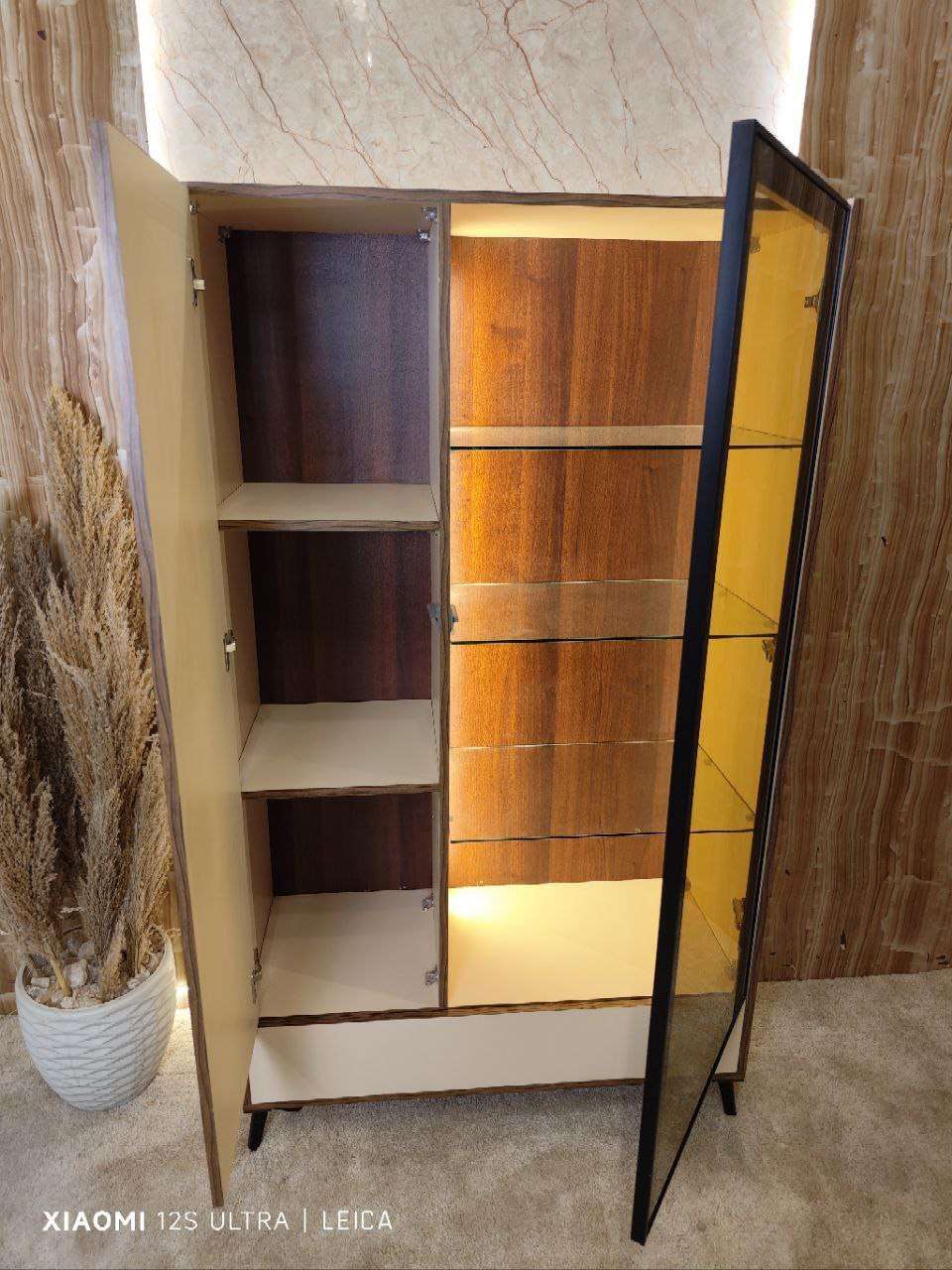 نيش 2ضلفه +درج ضلفه الوميتال زجاج عسلي رجول استانليس مفصلات سوفت كلوز اضاءه ليد بروفايل 100*180*40