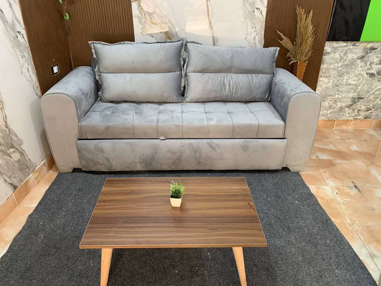 كنبه سرير خشب زان قماش مستورد سفنج33 البيج تزيد 300ج