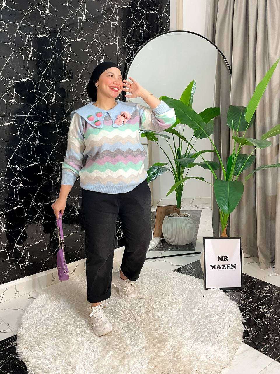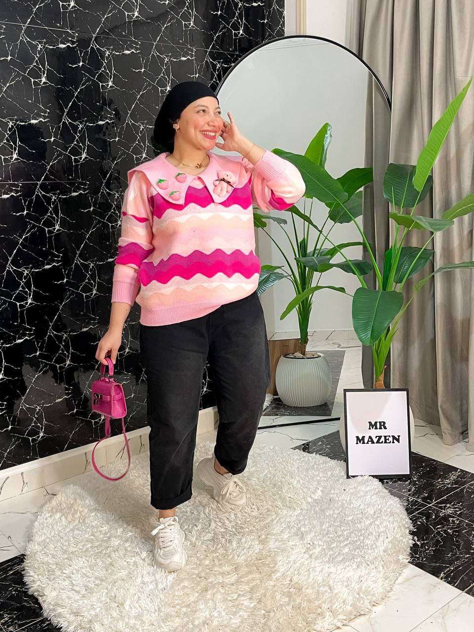 بلاوز مقلم ليقاء عليه فروله ودبدوب