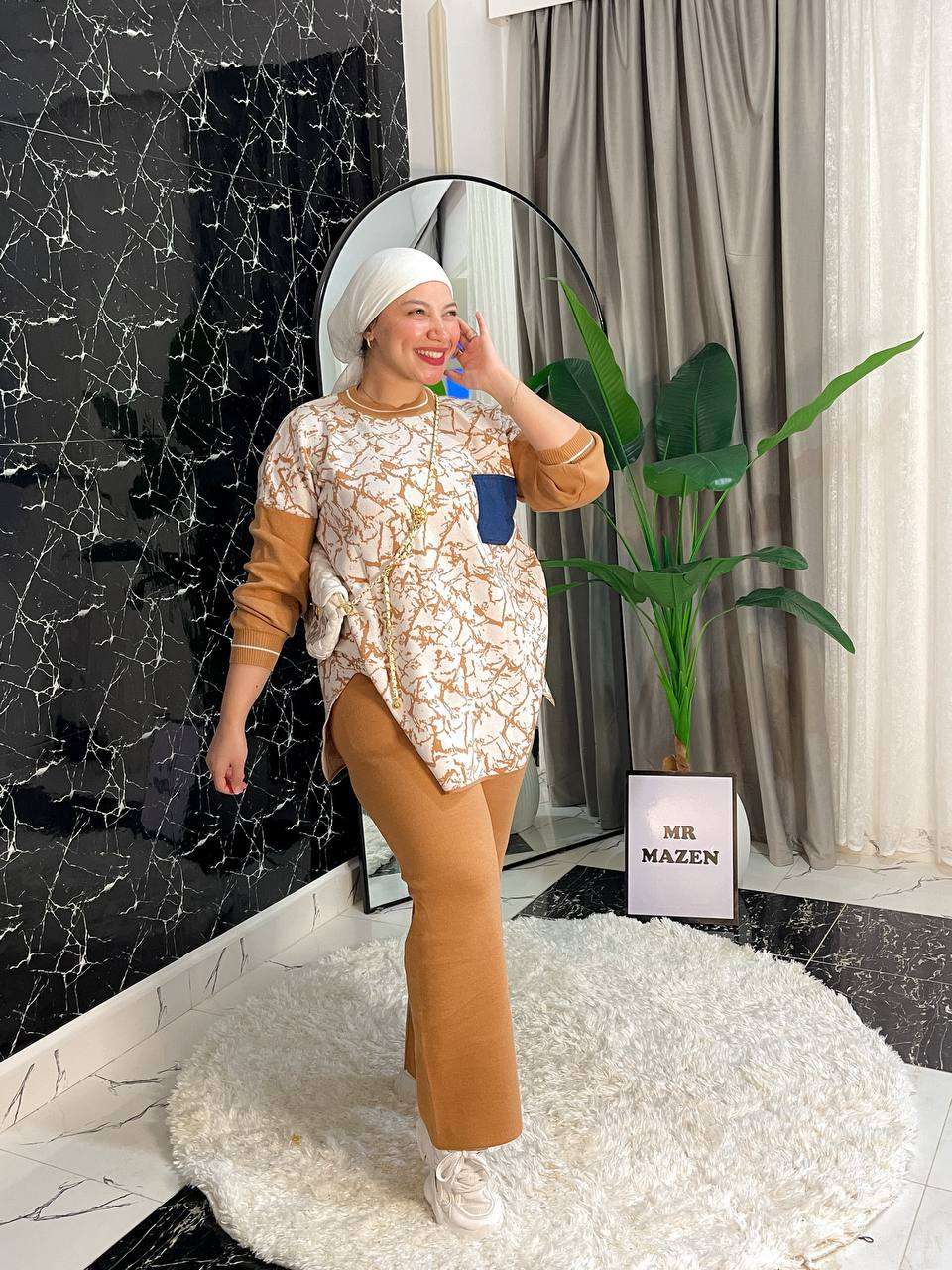 سوت قطعتين ضفاير مكون من بلاوز 3 زراير وبنطلون وايد ليج٧٣٠ج.م٥