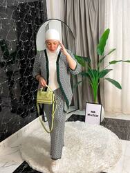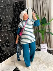 سوت 3 قطع مقلم مكون من بلاوز مقلم واسكرف وبنطلون وايد ليج٧٩٠ج.م١