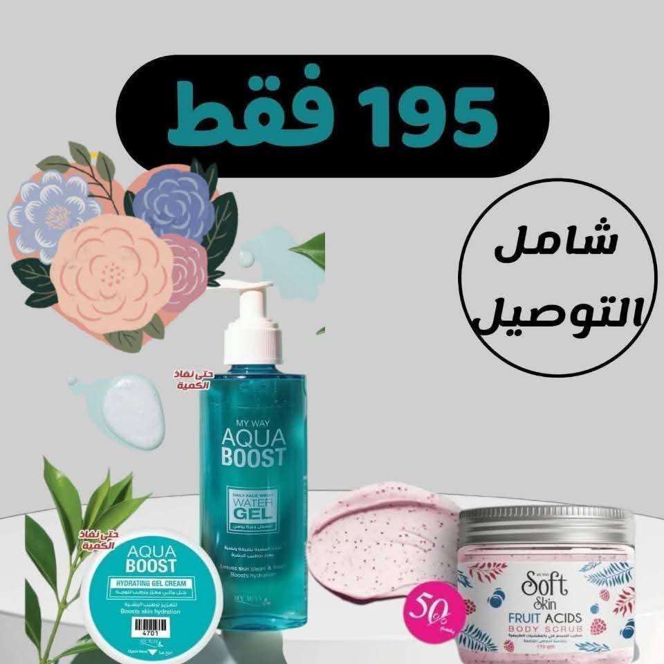 AQUA BOOST - سرّ بشرتكِ المشرقة! 💦 مجموعة AQUA BOOST من MY WAY تقدم لكِ: ✨ جيل مائي فائق النعومة · ترطيب عميق 24 ساعة · ملمس حريري غير لزج · مناسب لجميع أنواع البشرة ✨ مقشر الفواكه اللط