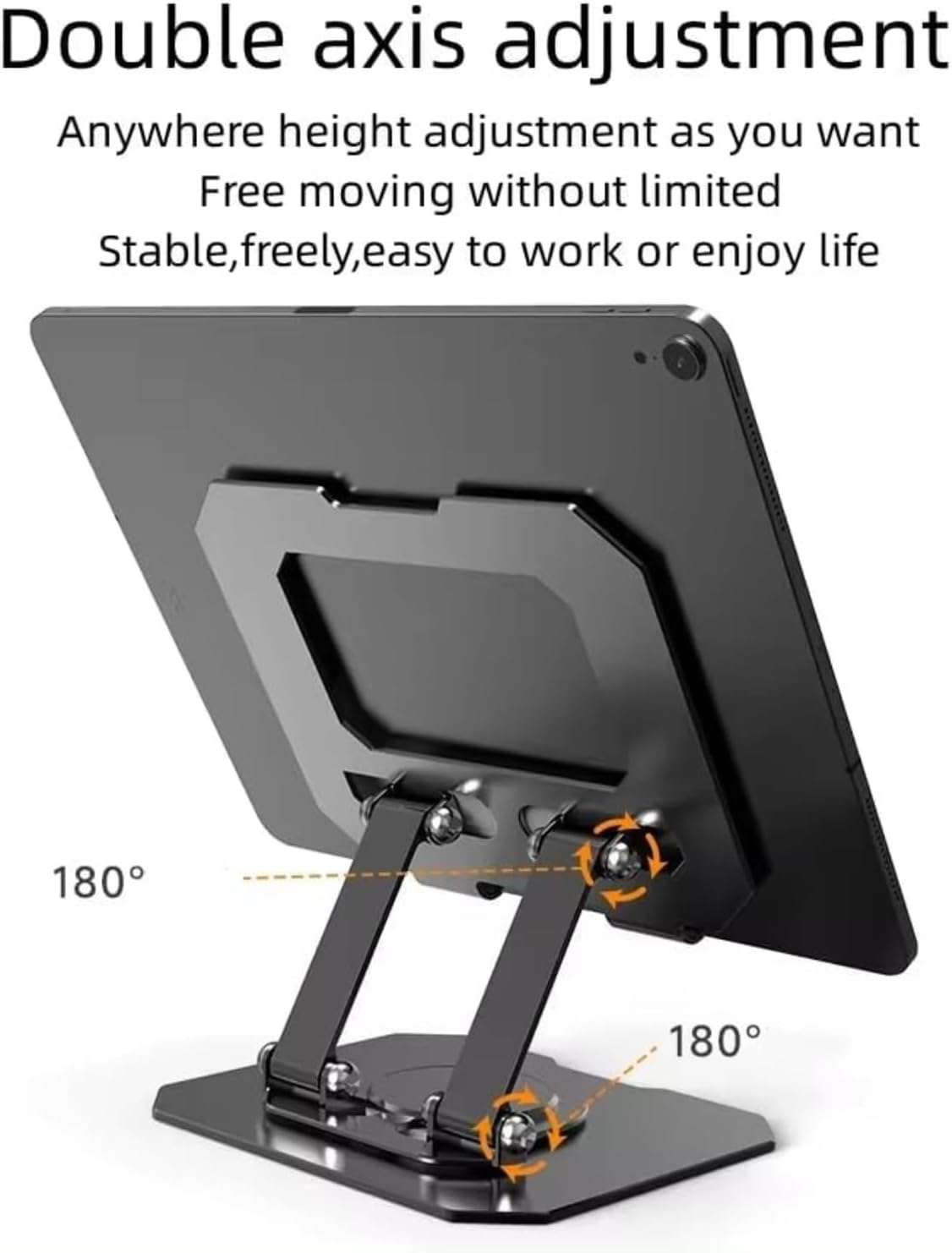 حامل التابلت والموبايل المعدني 360° ثبات + دوران كامل + تصميم مريح يحمي رقبتك وظهرك ✨ 📱 مناسب من 4.7 لحد 12 بوصة 💻 متين.. خفيف.. وسهل تحمله في أي مكان 🔹 المميزات الرئيسية: • دوران