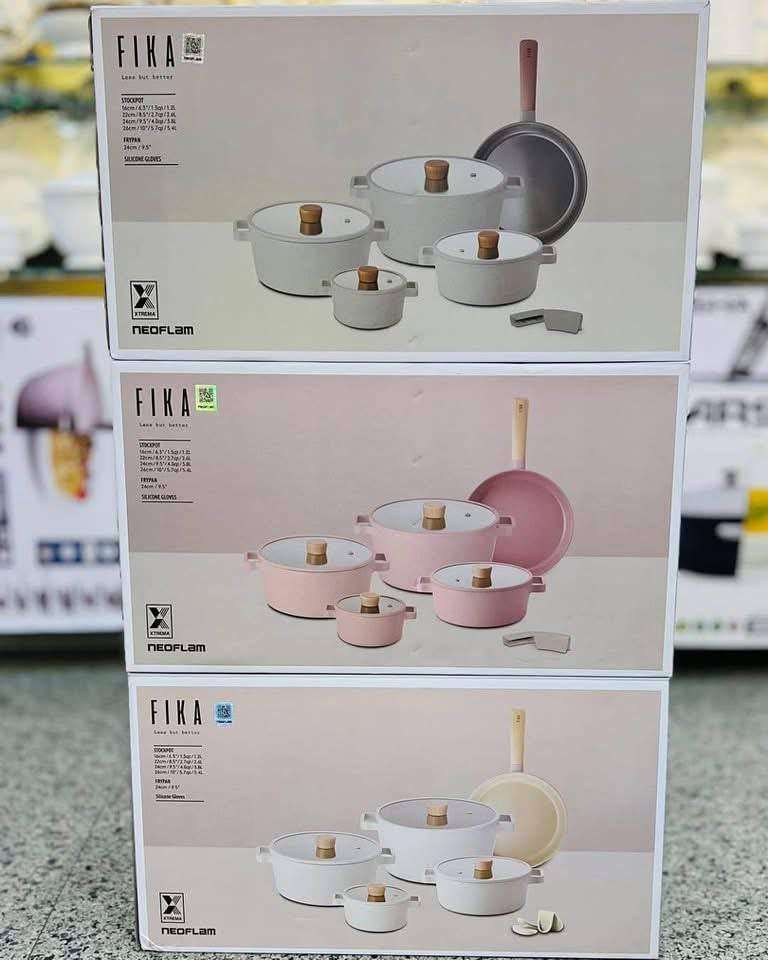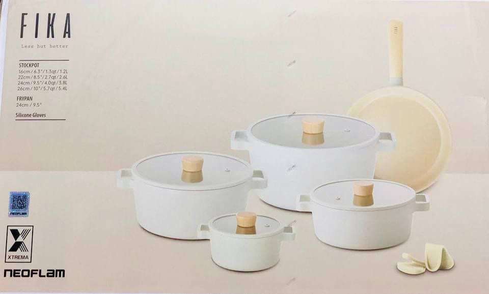 🌸 طهي صحي وجمال يخطف الأبصار: طقم حلل FIKA الكوري الأصلي 🌸 هل تحلمين بمطبخ عصري يجمع بين الأناقة المطلقة والأمان التام؟ طقم حلل FIKA الكوري من Neoflam هو الإضافة المثالية لكِ! بفضل تصميمه المستوح