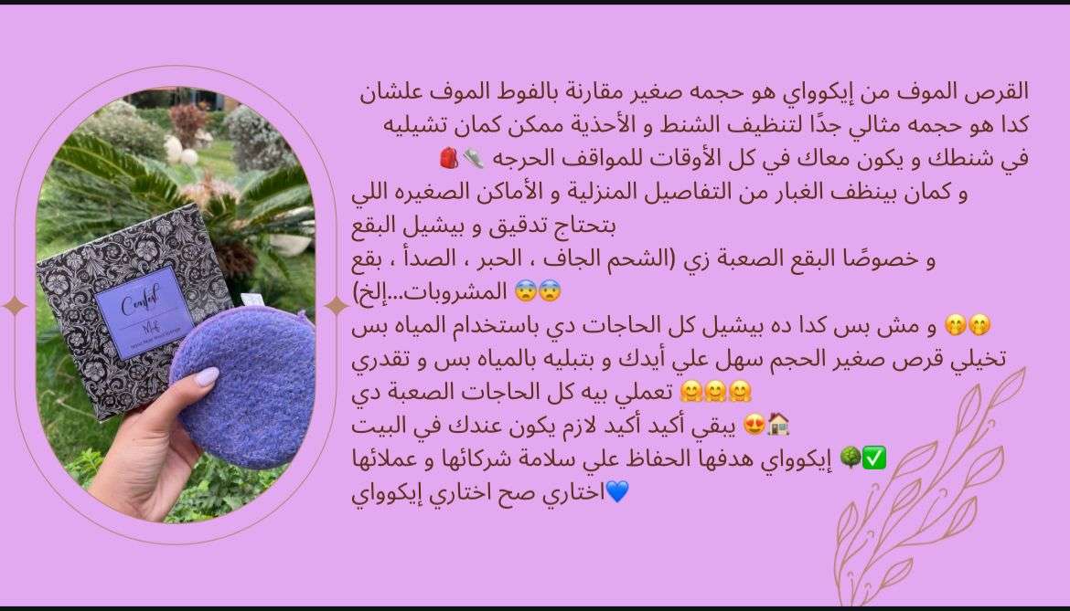 💜 قرص الموف من إيكواي الصغير في الحجم… الكبير في المفعول 😍 🧽 بينضف البقع الصعبة من المفروشات والسجاد والفوط زي: الشحم الجاف – الحبر – الصدأ – بقع المشروبات 💪 ✨ حجمه العملي يخليه سهل تشيليه