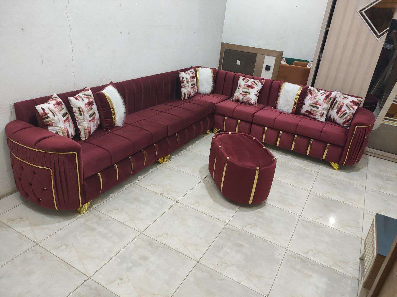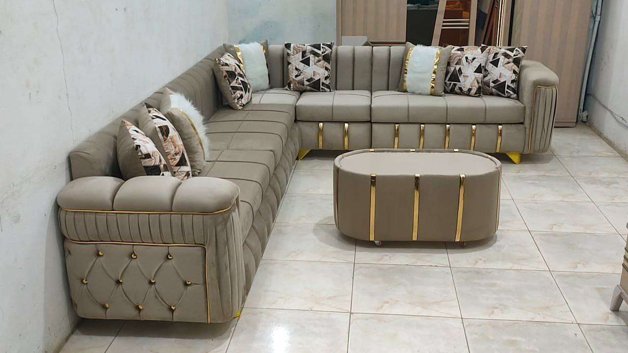 غرفه معيشه ركنه 330x270 , مقسمة ل5قطع معاها ترابيزه كود 112قماش جلد مقلوب 112