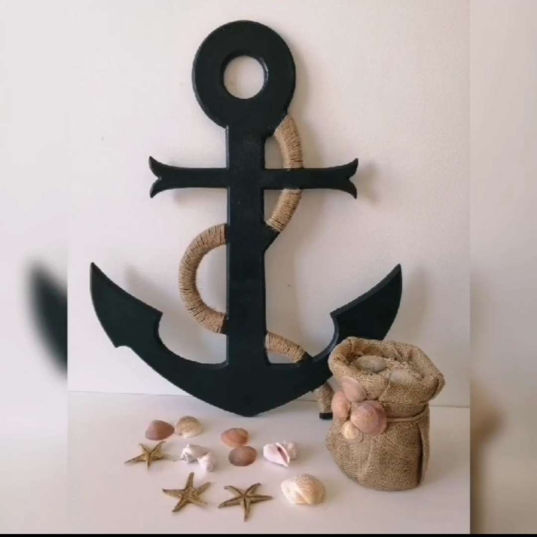 "أضف لمسة بحرية رائعة لديكور منزلك مع هذا الهلب الخشبي المصنوع من MDF، والذي يأتي بتصميم عصري على شكل مرساة! تم دهانه بألوان أكريليك لتدوم طويلاً، ومزود بخيوط خيش تضفي عليه لمسة من الطابع الريفي والبح