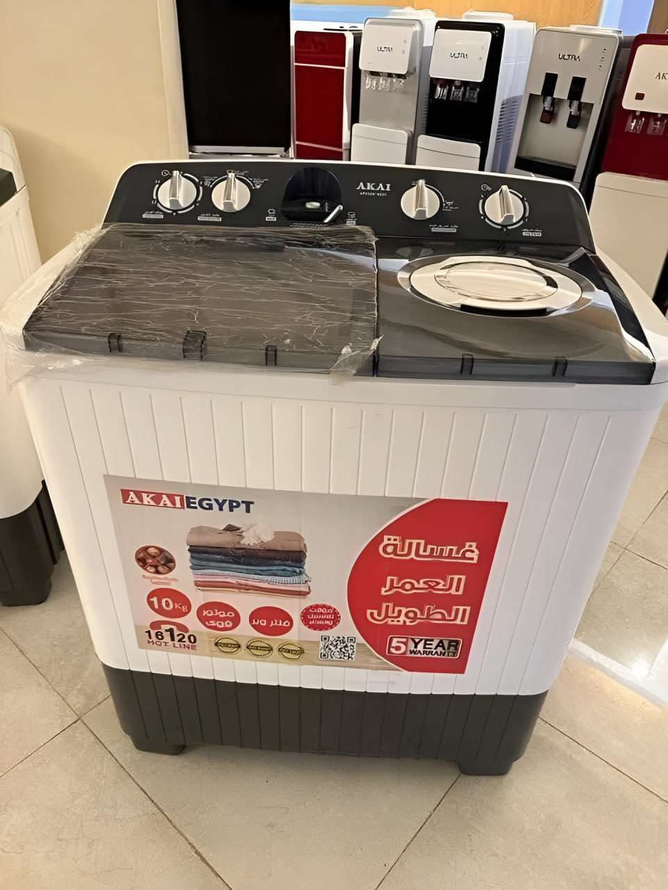 *غسالة أكاي نصف أوتوماتيك ياباني – فرز أول* ✨ *المواصفات:* ✅ سعة كبيرة 10 كيلو ✅ هيكل خارجي مقاوم للصدمات ✅ لوحة تحكم مقاومة للماء ✅ 2 حوض + 2 موتور + 2 تايمر ✅ مروحة قوية متع
