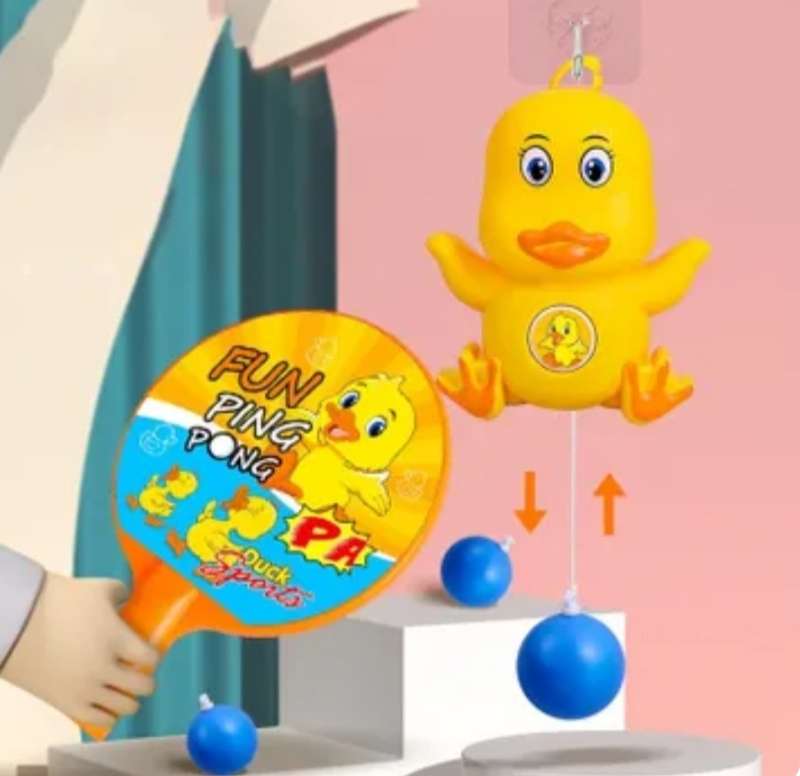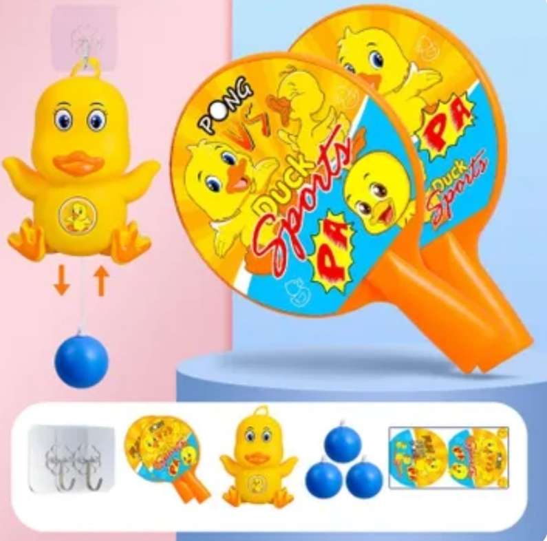 "لعبة بنج بونج بطوط المعلقة 🐥🏓 خلي ولادك يفرّغوا طاقتهم ويلعبوا بجو مرح ومليان ضحك 😍🎉" ✅ المميزات: تصميم ممتع على شكل بطوط يلفت نظر الأطفال 🐥 سهلة التثبيت على أي سطح (حيطة – زجاج – سيراميك