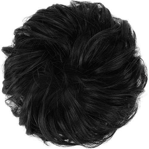 كعكة شعر اسود، مموجة، وغير متساوية على شكل دونات