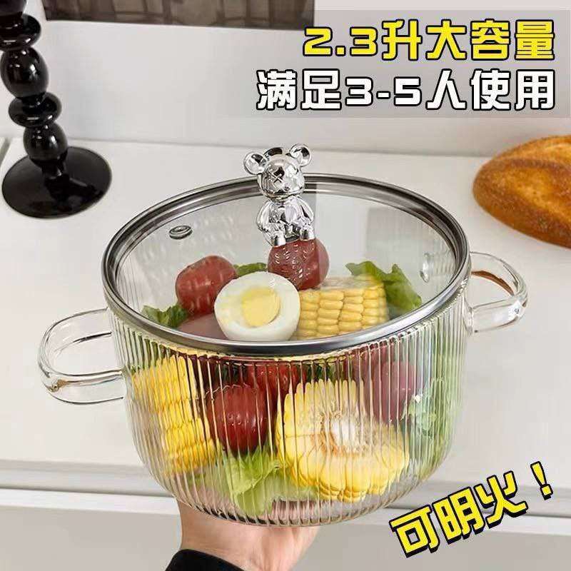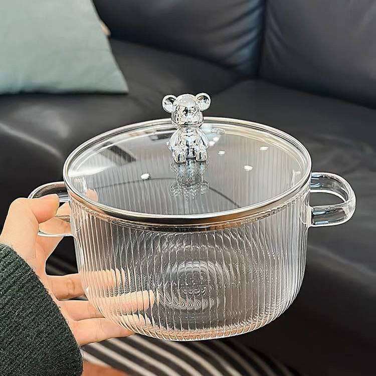 حلة زجاج بيركس بغطاء دبدوب اطار معدن🐻❄️🔥 متوفر المقاس الكبير سعة 1700 ملى علي النار مباشر حلة طبيخ 💥❤️