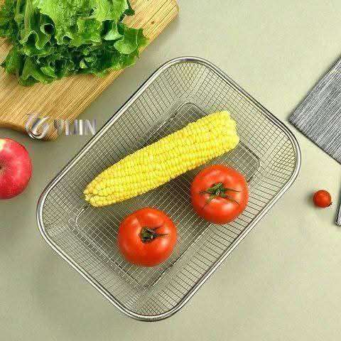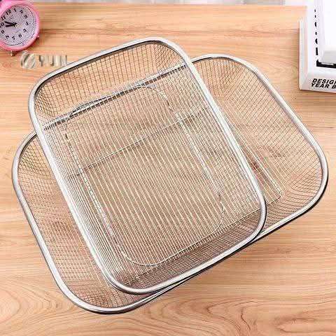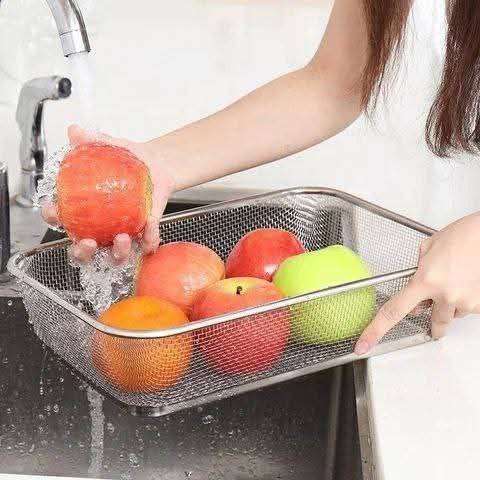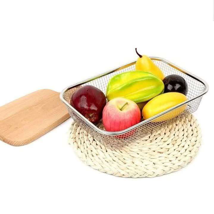 مصفاه استانلس بيور مستطيلة⚡ شكلها شيك جداا 🥰 عملية جدا خامه ممتازه ضد الصدأ مستورده تستخدم صفايه تحمير ومشاوي و كمان مصفاه للخضروات و الفاكهه و كمان تستخدم لحفظ الفاكهه المصفاه