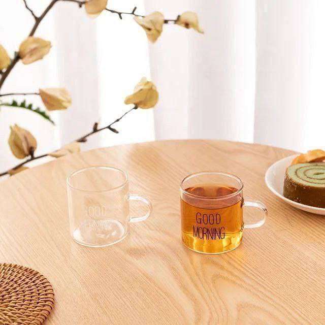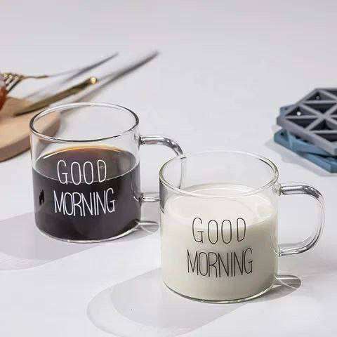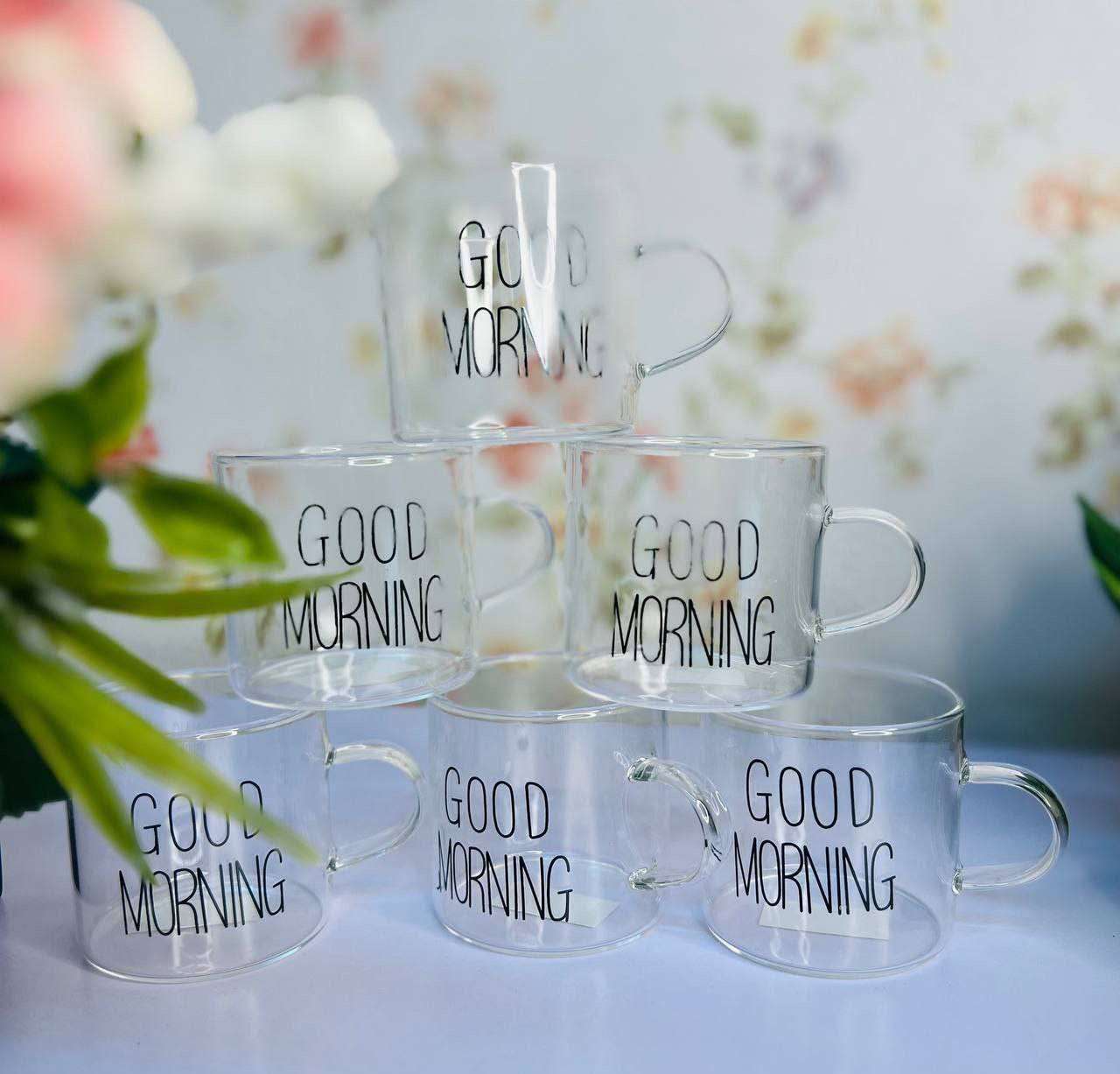 Good morning ♥️♥️ مج قهوه جود مورنينج ♥️ فنجان زجاج بيركس حراري مستورد العلبة 6قطع البيع بالعلبة فقط