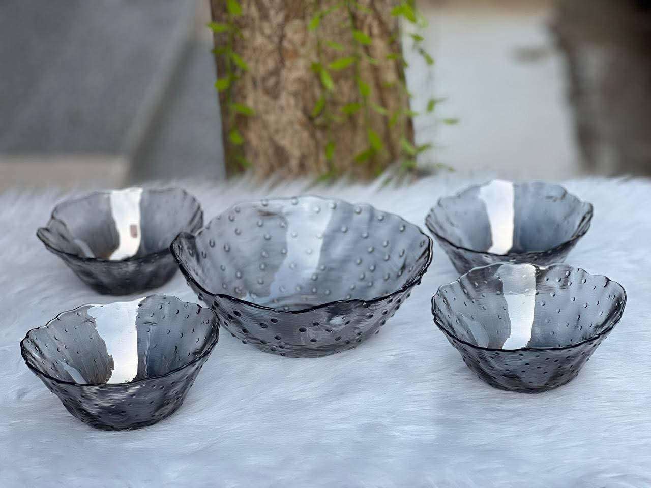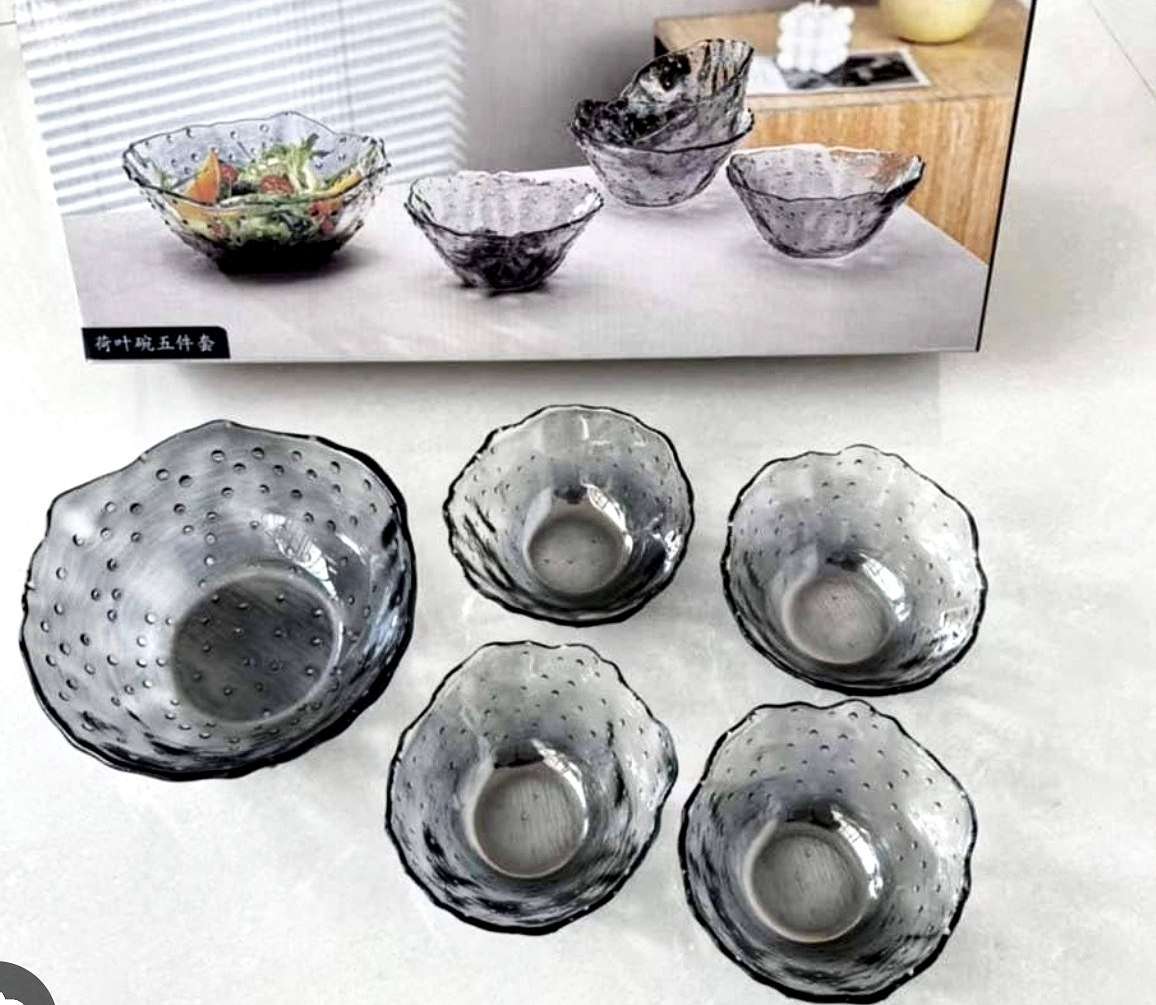 🥀جديد 🥀 طقم خشاف زجاج 5 قطعه زجاج فاميه منقط بارز شكل ورقه الشجر مستورد ينفع خشاف سلاطه اي تقديم