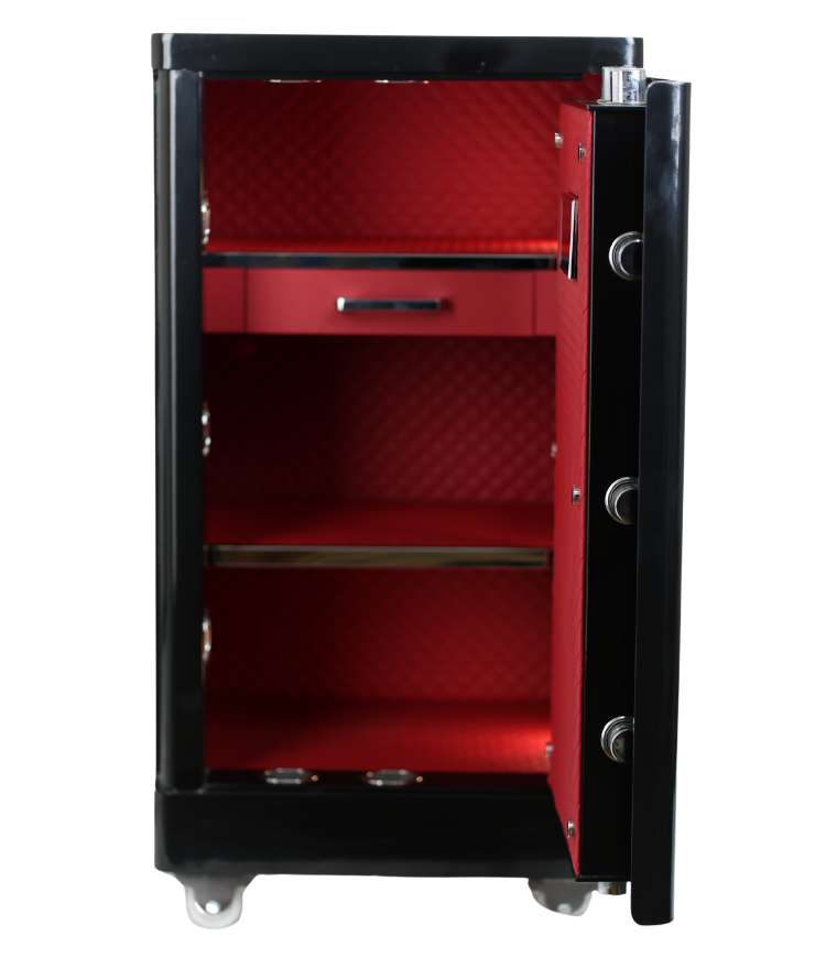 "هيكل معدني متين ديجيتال + بصمة مقبض سري خاصية أمان مزودج مفتاح ماستر 2 رف داخلي درج داخلي بطانة داخلية درج سري"