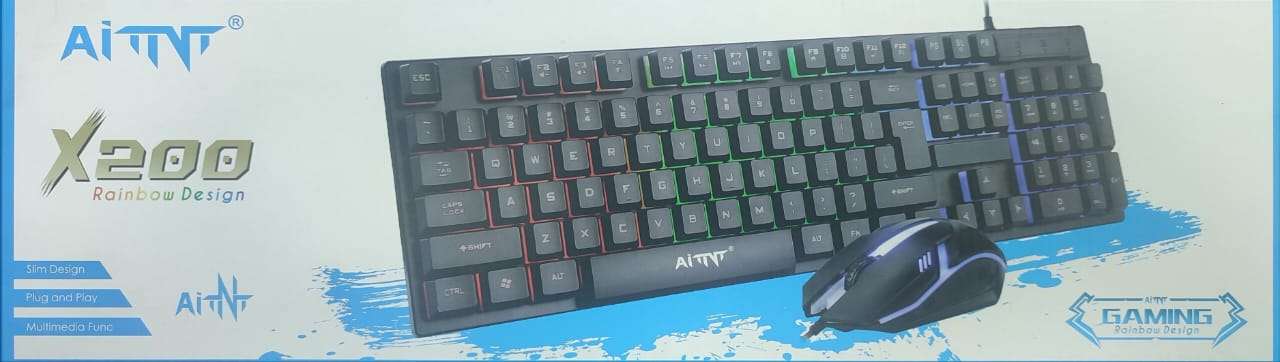 لوحة مفاتيح وماوس جيمنج من aitnt x200 للألعاب بإضاءة ملونة RGB