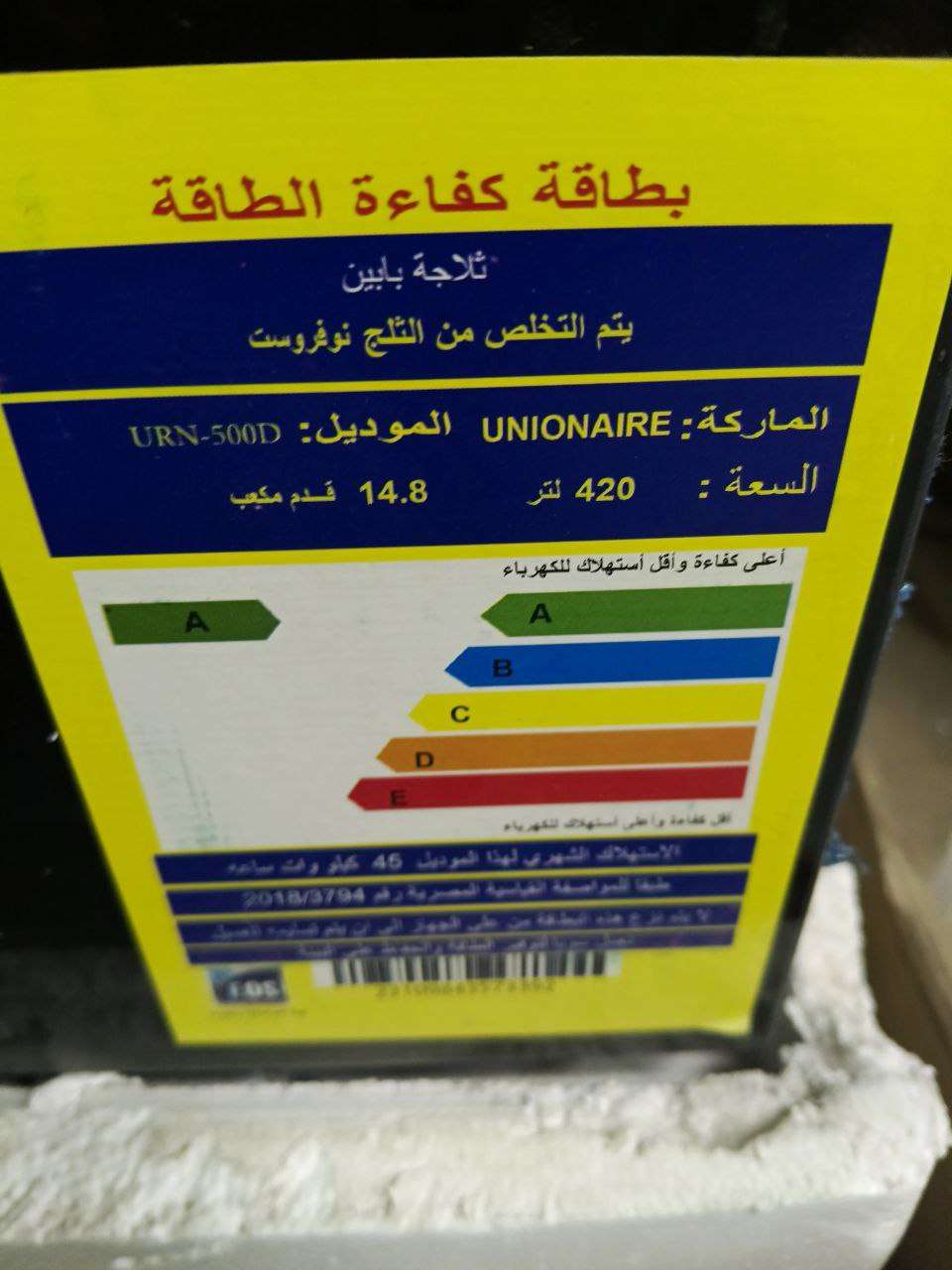تلاجات يونيون اير موديل سعة ٥٤٥ لتر١٨,٥٠٠ج.م