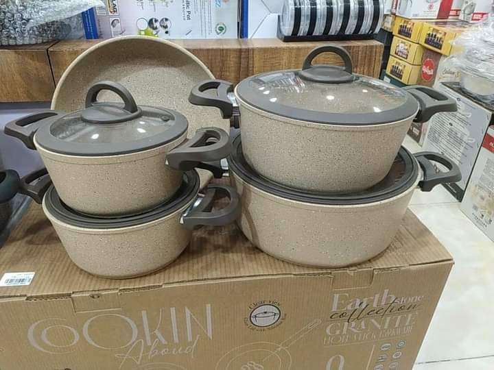 النهارده بنقدم مجموعة جديدة ومميزة من منتجات Cookin Aboud هتغنيكي عن اى حاجه تانيه فى مطبخك😍🤎. أطقم حلل جرانيت من Cookin Aboud بعدد قطع مختلفة هتغطي كل احتياجاتك🤩. تتميز بانها مصنوعة من 5 طبقات م
