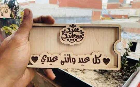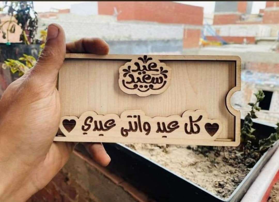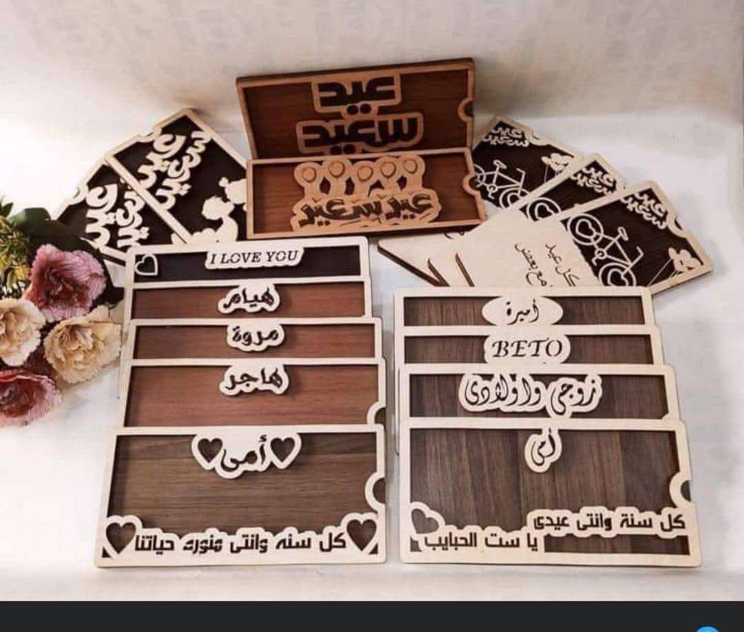 كارت مصنوع من الخشب لوضع العيديه بداخله للتقديم بشكل جميل