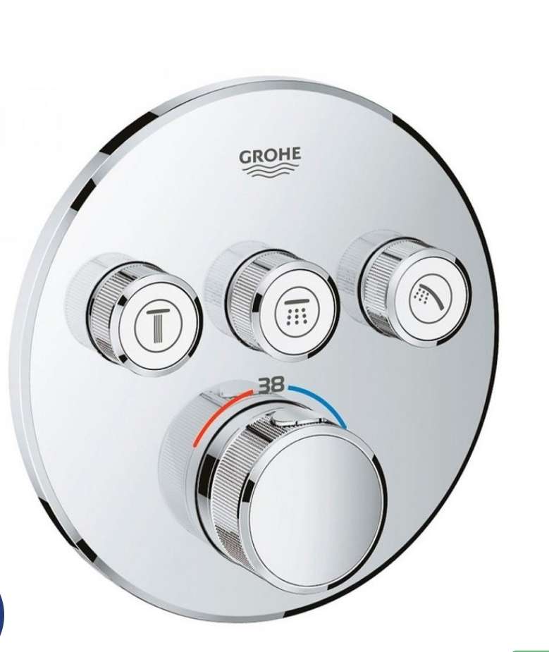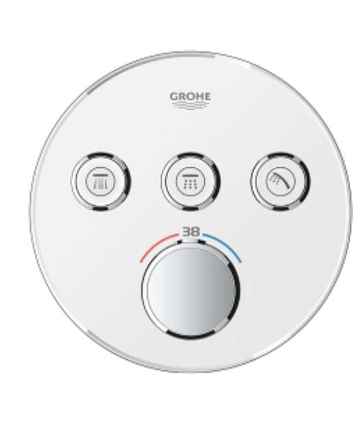 وش خلاط بانيو شاور دائري كروم ٣مخرج سمارت كونترول smart control أنتاج مستورد من أنتاج و ضمان شركة جروهى grohe العالمية التى تقدم مجموعة من الخلاطات عالية الجودة، تجمع بين التصميم العصري والتقنيات المب