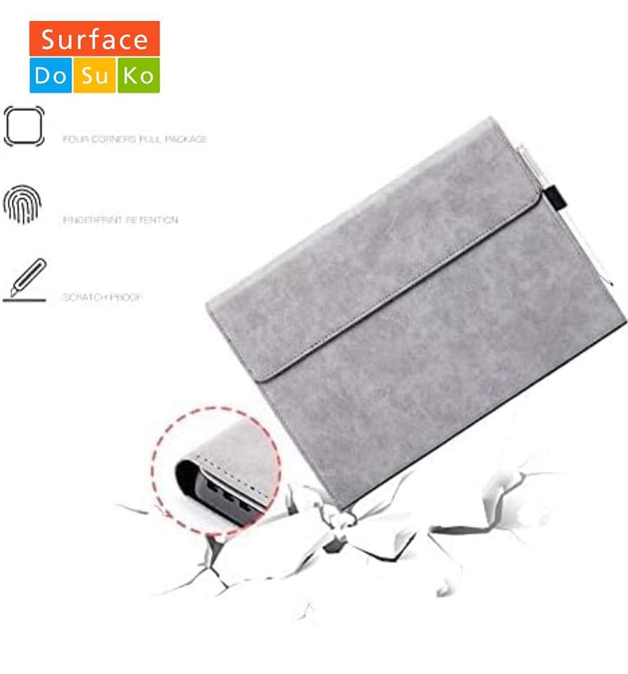 💥 باللون الرمادى وأفضل خامات للحماية 💥Protective Case for Microsoft Surface Pro Tablet, 🔸️Surface pro 4,5,6,7,7+ 🔸️Compatible with Type Cover Keyboard, 🔸️Business Cover with Pen Holder 🔸