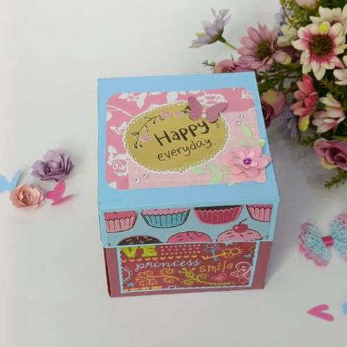 ndmade Birthday Explosion Box - 10*10 Cm A beautiful personalized Explosion Box created with much love and care. When closed, the box looks like a gift box and when open, it will explode and revea