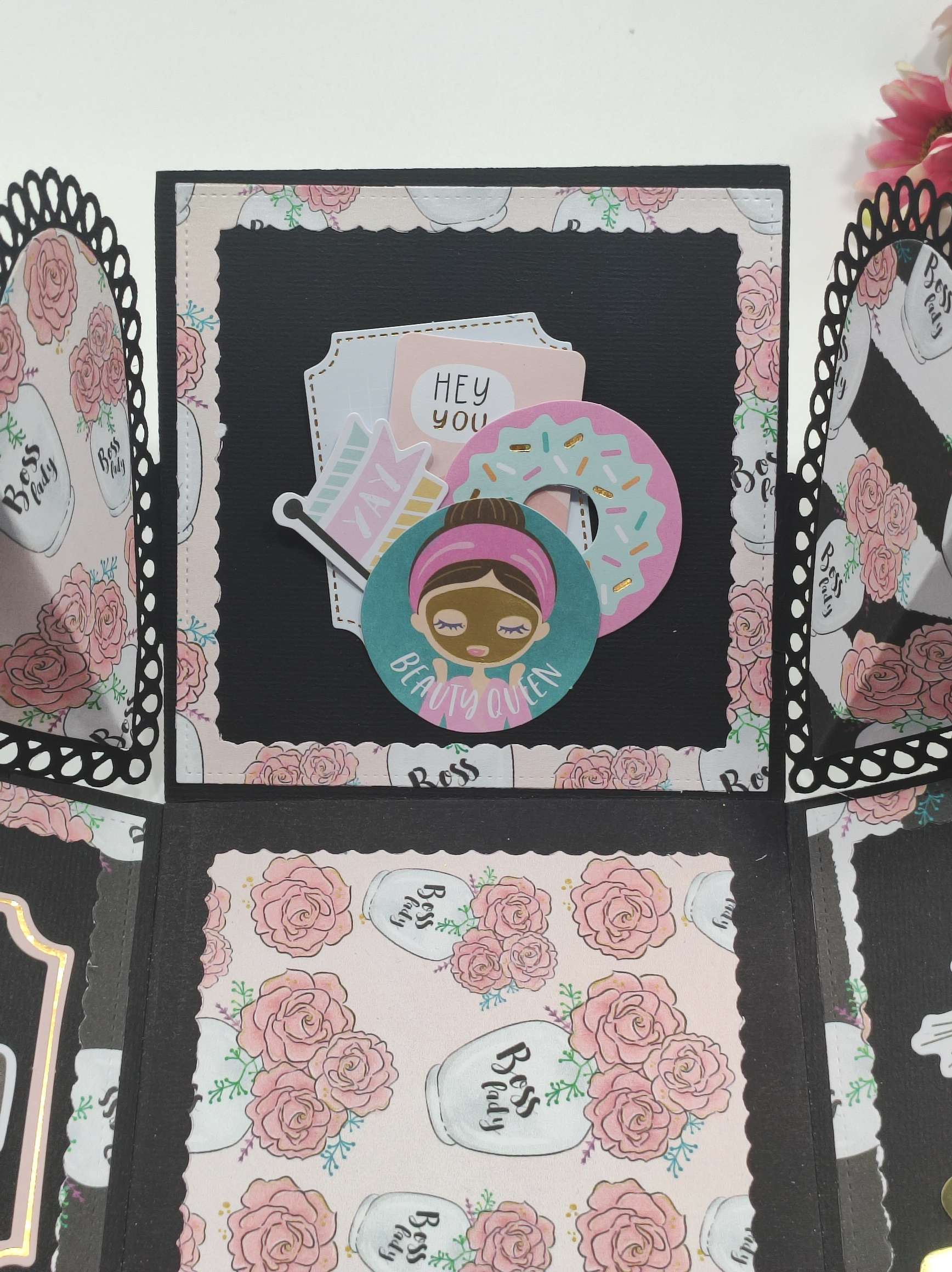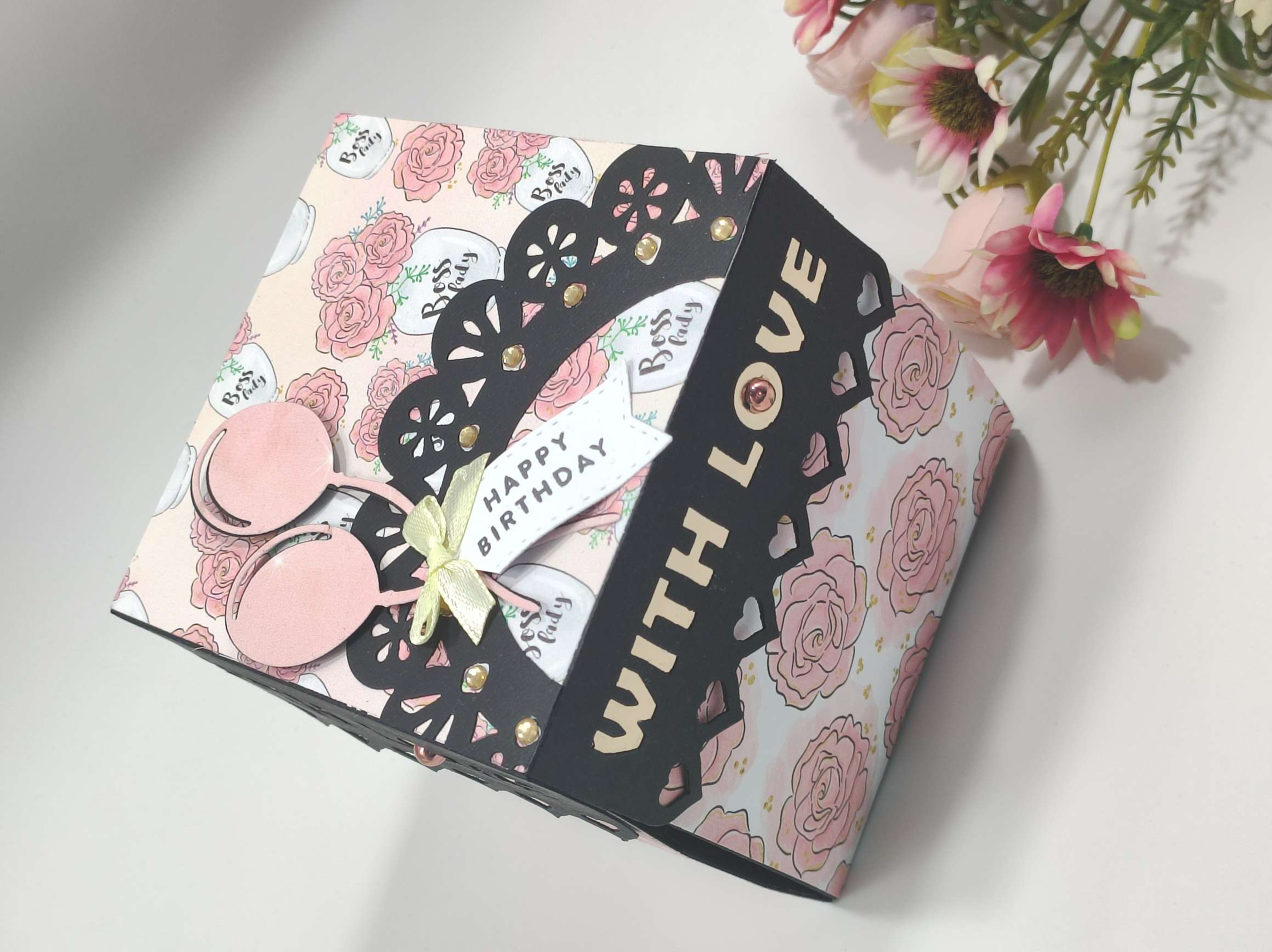 متاح اضافة الاسم والرسالة الخاصة بك او صورة Handmade Birthday Explosion Box - 10.5*10.5 Cm A beautiful personalized Explosion Box created with much love and care. When closed, the box looks lik