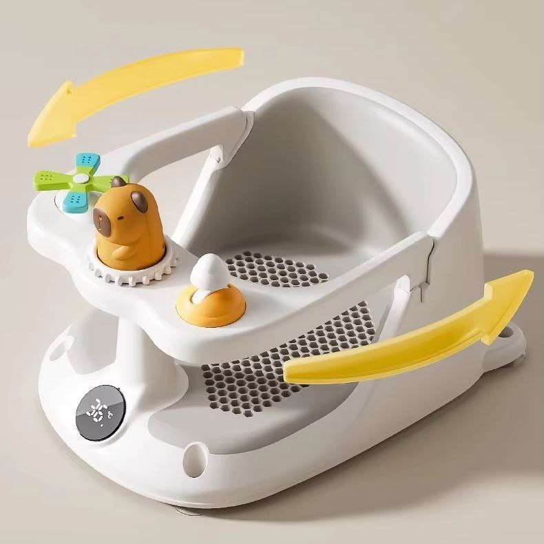 كرسي استحمام للرضع عملي وآمن، بيساعد البيبي يقعد مرتاح وقت الحمام أو اللعب في الميه. الكرسي معمول بتصميم مريح وبييجي مع ألعاب صغيرة في المقدمة علشان تسلي البيبي. 📌 المواصفات: الخامة: بل