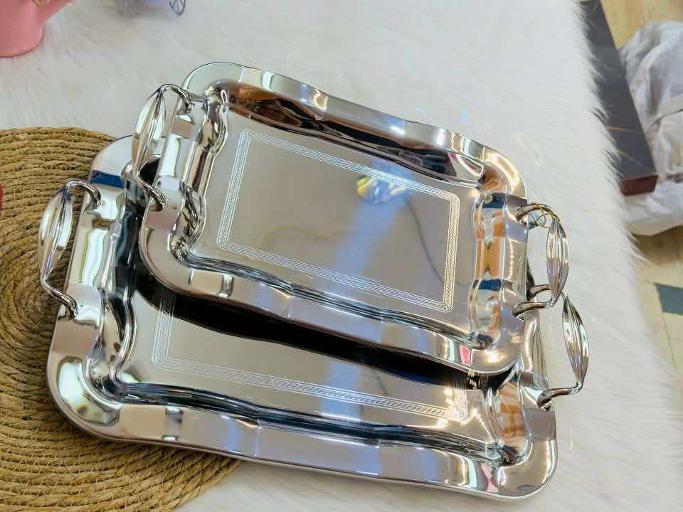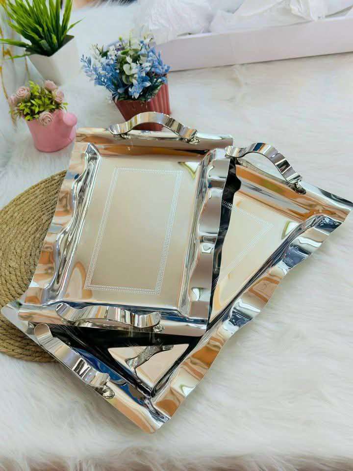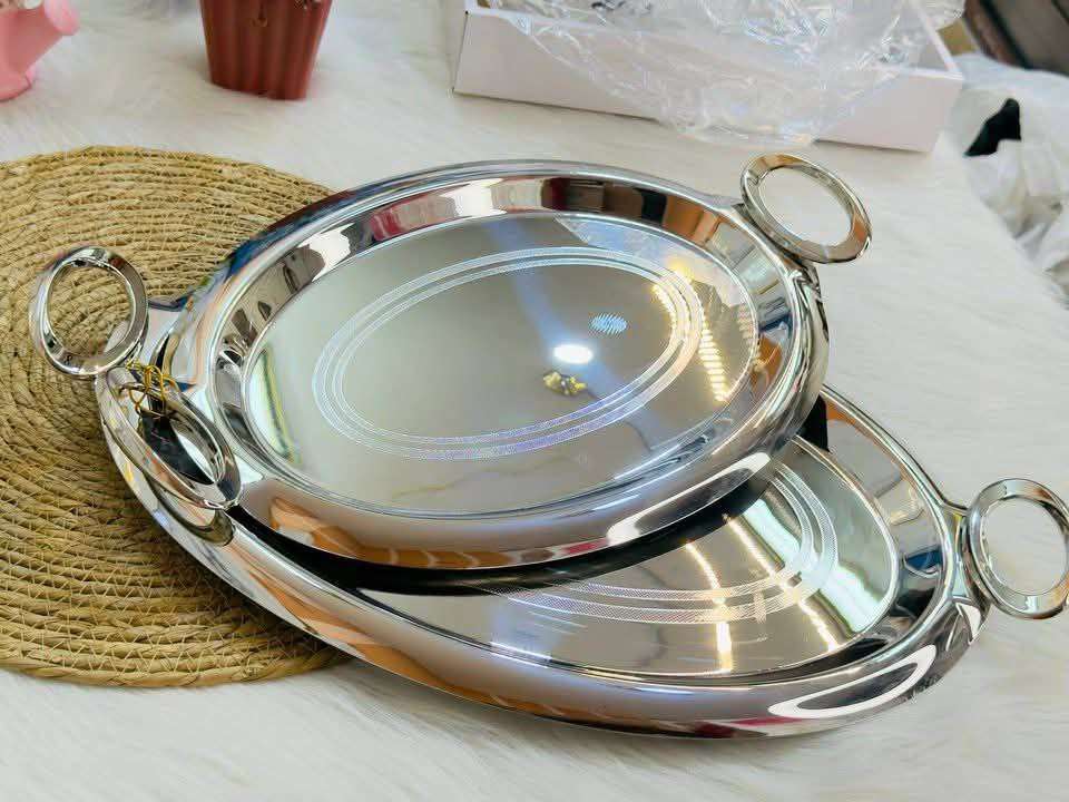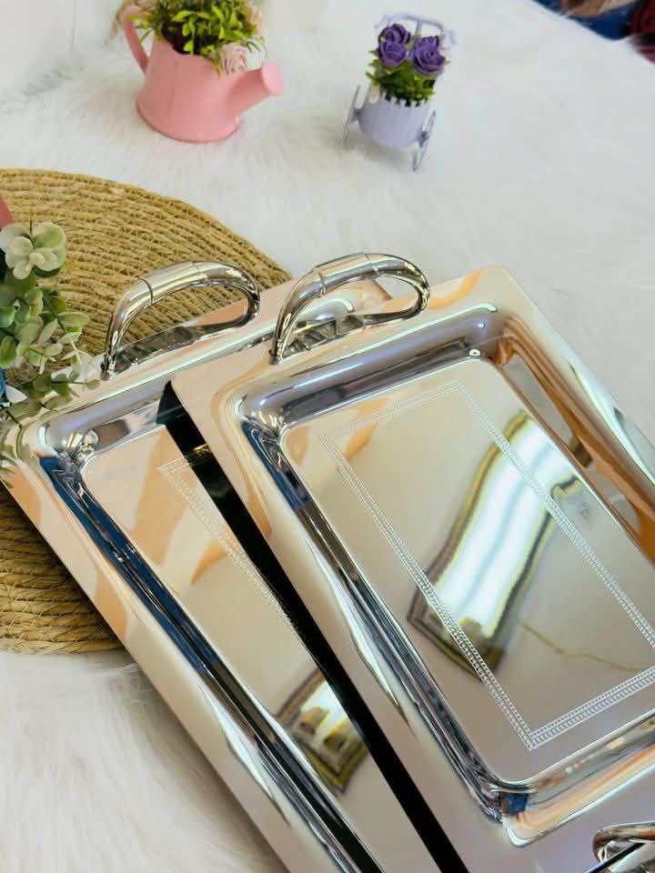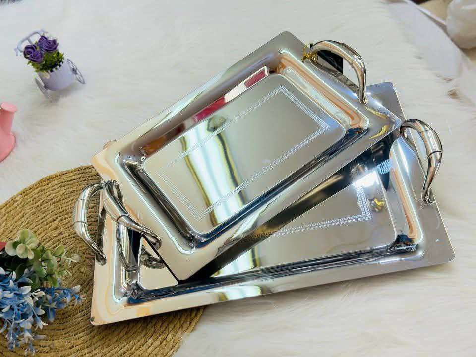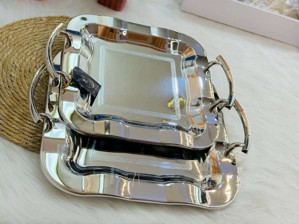 وصل طقم صواني تقديم 2ق فضي تحفه استلس 18/10 صواني الأميرات جات عندنا 😍😍 الخامه تحفه بجد السعر قطاعي 1650ج