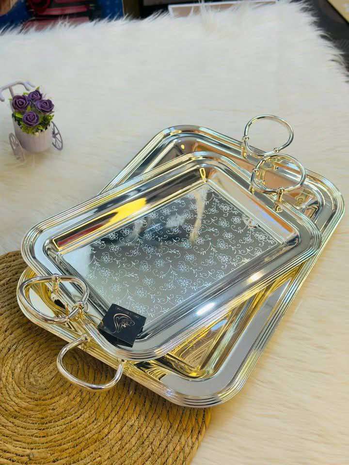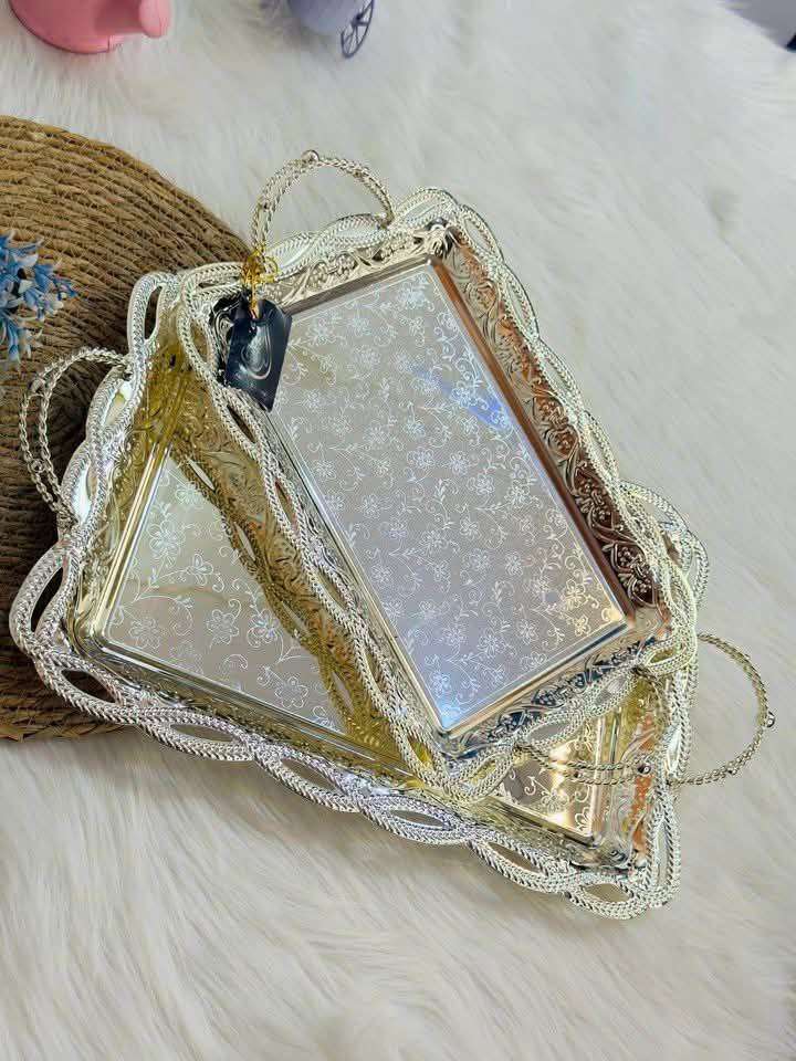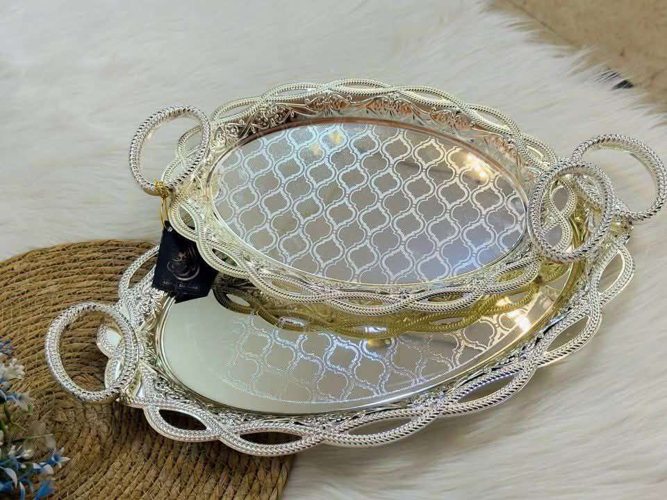 وصل طقم سلفر صواني تقديم 2ق فضي تحفه استلس صواني الأميرات جات عندنا 😍😍 الخامه تحفه بجد 🥰 السعر قطاعي 1650ج
